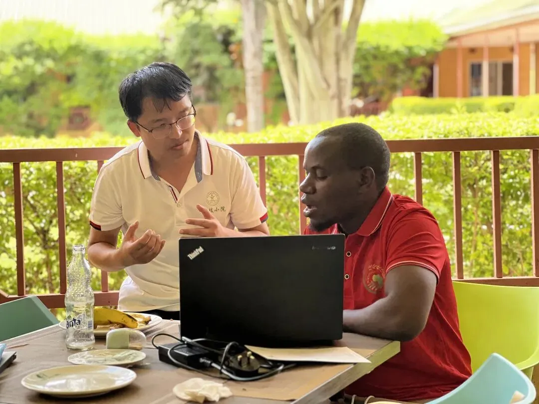 中国农业大学中非科技小院项目负责人焦小强副教授在马拉维指导留学生Augustine Phiri毕业论文。资料图