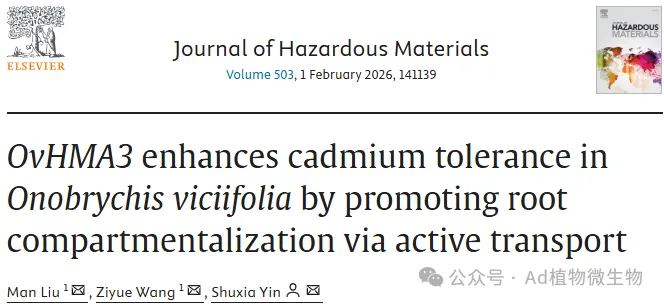 近日,北京林业大学草业与草原学院尹淑霞教授团队的研究成果“OvHMA3 enhances cadmium tolerance in Onobrychis viciifolia by promoting root compartmentalization via active transport”在《Journal of Hazardous Materials》在线发表。研究系统揭示了红豆草通过液泡膜转运蛋白OvHMA3介导的主动镉区室化机制,为其“高生物量、低转运”的修复特性提供了分子基础,为重金属污染植物修复提供了新策略。