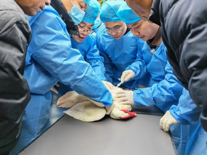 本次培训采取“分工授课、互补联动”方式。宋诗川围绕动物疫病防控与监测,系统讲解重大动物疫病的流行特征、识别要点与免疫原理,详细说明常见畜禽的标准化免疫流程与采血技术要点,帮助学员构建科学防控知识体系。郑春林则聚焦实操环节,采取“讲解+演示”相结合方式,逐步示范畜禽采血全过程,涵盖动物保定、进针角度、采血量控制及样品处理等步骤。结合案例,宋诗川进一步强调了规范采血对疫情预警的关键作用,并提示注意防范操作应激与样品污染。