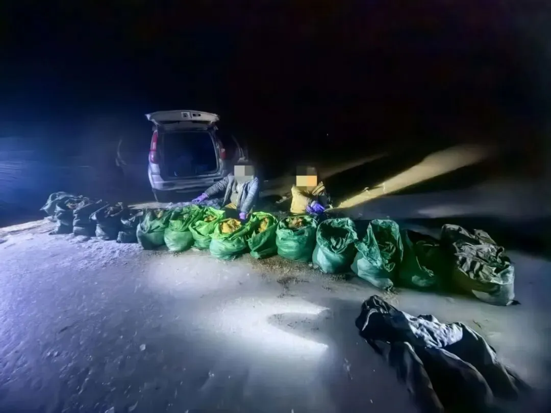 联勤联动突击抓捕,彰显执法合力震慑。为确保抓捕行动精准高效、万无一失,县综合行政执法局迅速制定周密抓捕方案,强化跨部门协同作战。执法一队紧急协调海南州公安局环食药侦支队、共和县公安局黑马河派出所、石乃亥派出所民辅警增援。1月22日凌晨1时30分,联合执法组直奔青海湖石乃亥镇尕日拉村辖区湖面偷捕点位实施突击抓捕,现场成功抓获涉案人员2名(另有1名涉案人员趁乱逃脱,目前正全力追捕),发现冰凿网眼19处,查获捕捞渔网具34盘,查扣涉案车辆1辆,涉案工具15件(个),查获渔获物(青海湖裸鲤)8袋,共计369.6公斤(771 尾)。同晚,执法三队6名执法人员克服深夜低温、地形复杂等多重困难,在龙羊峡镇龙羊新村四社水域持续7小时蹲守布控,于凌晨5时30分果断出击,成功抓获涉案人员2名,查获渔获物(三文鱼)21条,共计31.85公斤,两起案件均实现人赃并获。