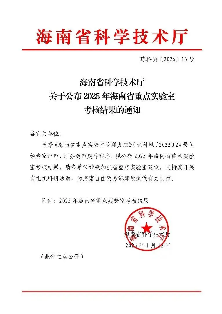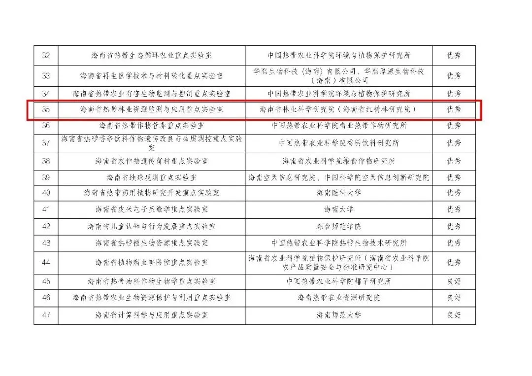 近日,海南省科学技术厅公布2025年度全省重点实验室考核结果,依托海南省林业科学研究院(海南省红树林研究院)建设的“海南省热带林业资源监测与应用重点实验室”在本次考核中荣获“优秀”等次。该成绩标志着实验室在科研创新、平台建设与服务海南林业发展方面取得显著成效,获得了权威认可。