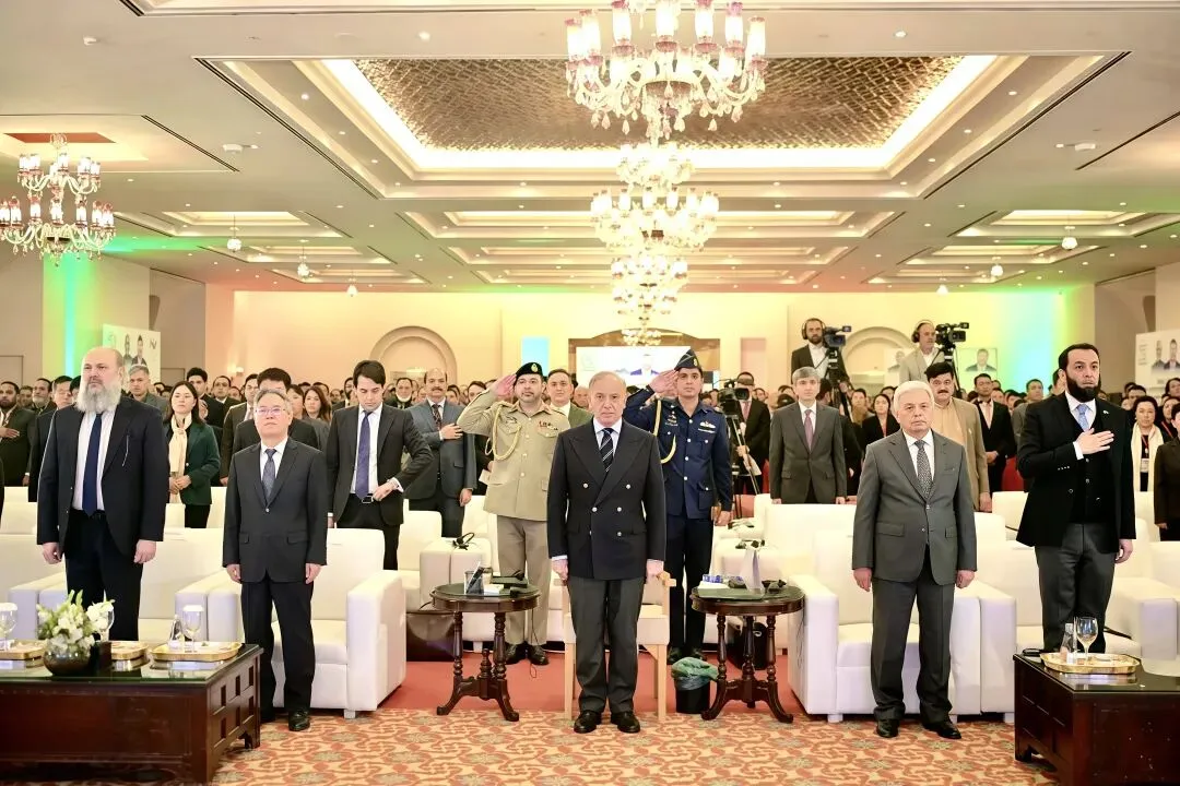 夏巴兹总理在发言中赞扬了中国在习近平主席领导下取得的发展成就,特别是2025年中国经济总量迈上20万亿美元新台阶,实现5%的稳定增长。他表示,这一重大成就不仅造福中国人民,也为包括巴基斯坦在内的世界各国带来重要发展机遇。巴方愿与中方全面落实四大全球倡议,加快打造中巴经济走廊升级版,共同谱写两国全天候战略合作新篇章。