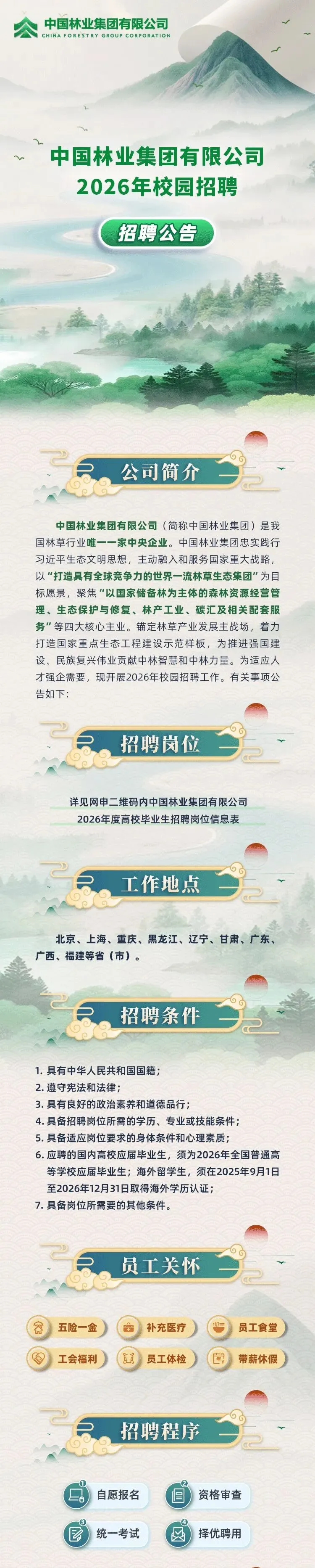 >【国企招聘】中国林业集团有限公司2026年校园招聘