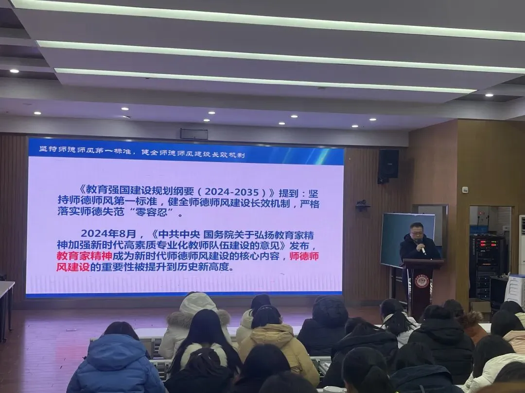 赖媛副校长在总结中表示,本次讲座内容系统、案例鲜活、思想深刻,既有理论高度,又有实践指导意义。她强调,全体教师应以此次学习为契机,进一步筑牢师德根基,提升育人能力,将教育家精神融入日常教育教学,努力做学生喜爱、家长满意、社会认可的新时代“大先生”。