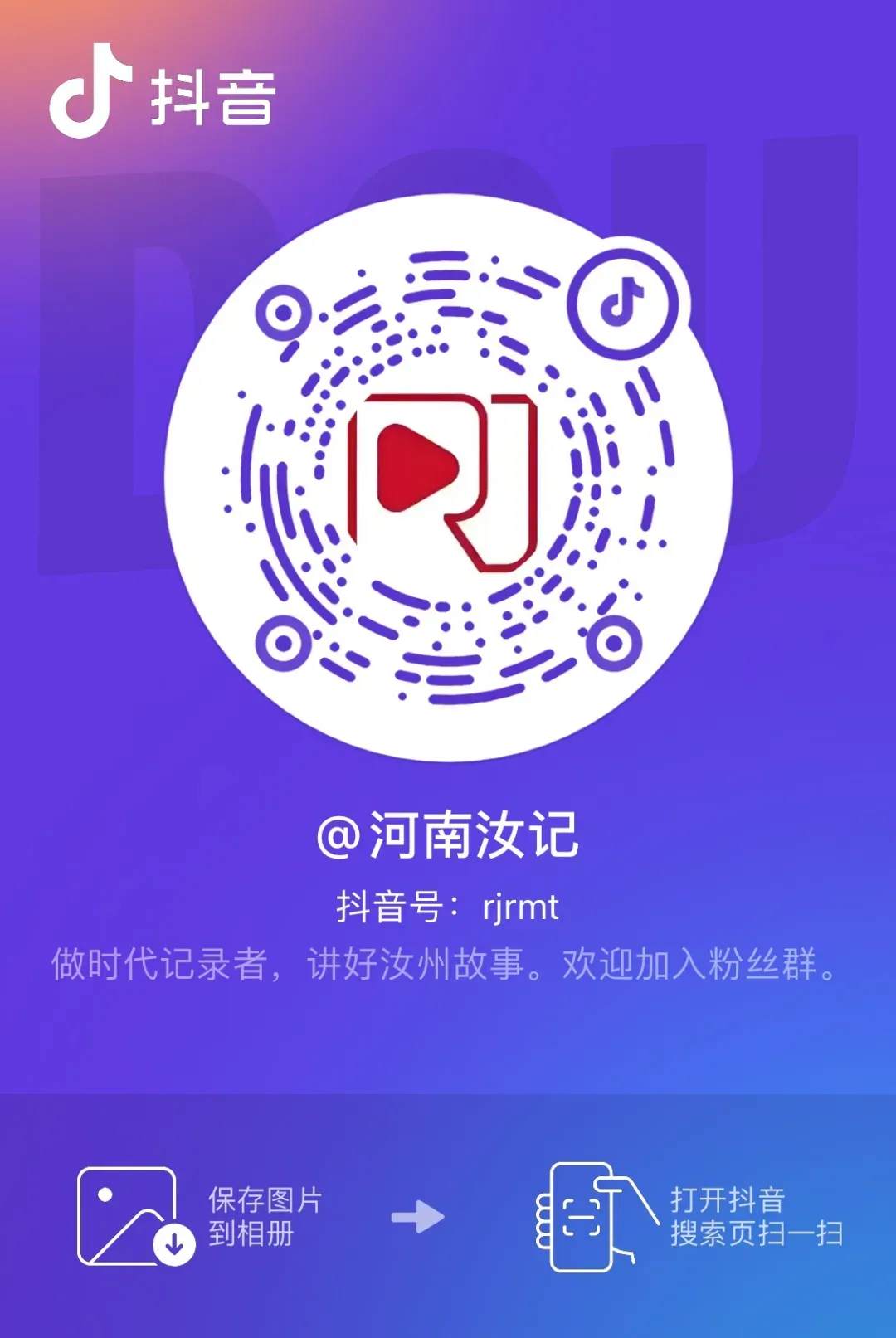 关注汝记融媒体官方抖音号。