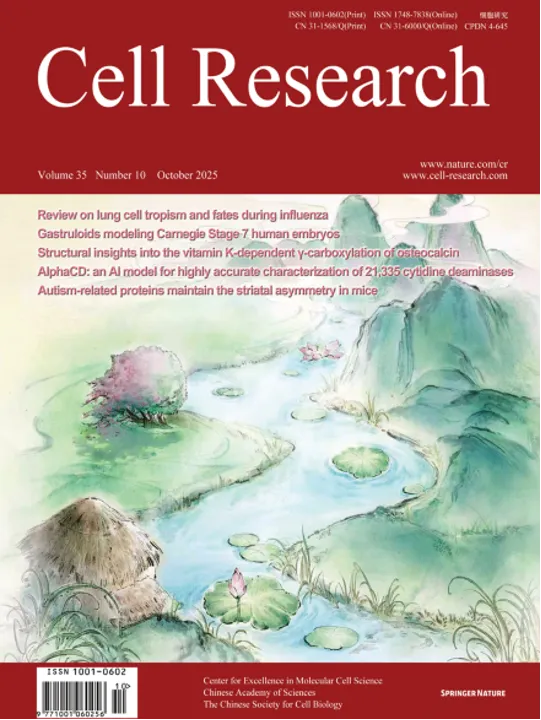 The thatched cottage symbolizes the gastruloid formed by human gastrulating stem cells. Its development surges forward like a river. The trees on the bank, the lotus flowers and leaves drifting on the water, and the distant mountains together signify the development of organs arising from the three germ layers within the gastruloid. See page 719–734 by Mingqian Huang et al. for details.