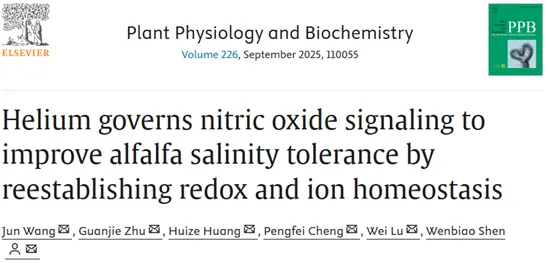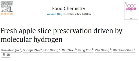 4月,钟山青年研究员程鹏飞老师为第一作者在《Biochemical and Biophysical Research Communications》上发表研究性论文“In vitro hydrogen production by mammal [FeFe]-hydrogenase-like protein”。该研究发现通过重组人(Homo sapiens)和猪(Sus scrofa)核前核纤层蛋白识别因子(Narf)样蛋白,当其在原核系统中表达时,可能在体外催化H2的产生。该研究发现了哺乳动物细胞具有内源性产生 H2的能力,并以此推测氢气的产生可能是一个普遍的生物学现象。7月,金姗姗硕士在食品学期刊《Food Packaging and Shelf Life》上发表研究性论文“H2 MAP improves fresh potato slice preservation by keeping starch content and regulating antioxidant capacity”。该研究发现氢气改良气调包装 (H2 MAP)可以维持储存过程中鲜切马铃薯的H2稳态和淀粉损失,同时延缓了褐变并提高多酚氧化酶的活性,从而提高其的感官品质和营养价值。研究结果展示H2 MAP可能是一种有效的鲜切马铃薯保鲜及加工策略。同月,氢气生物学课题组李龙娜老师在《Plants》上发表“Molecular Hydrogen Improves Blueberry Main Fruit Traits via Metabolic Reprogramming”,该研究发现在蓝莓种植中,基于氢气(H2)的应用会带来显著的果实产量与品质提升。富氢水灌溉后的蓝莓,在果实方面,增加了单果重、果实赤道直径;口感方面,可滴定酸度下降,固酸比和糖酸比升高;品质方面,总挥发物、维生素C含量及抗氧化能力的增加。同时使用加权蛋白共表达网络进行蛋白质组学分析,发现了氢气可能影响的调控路径,如丝氨酸羧肽酶样蛋白I/II、ADP-核糖化因子1/2等。该研究为园艺作物产量与品质提升提供了一种新的策略。9月,王军博士在期刊《Plant Physiology and Biochemistry》上发表了题目为“Helium governs nitric oxide signaling to improve alfalfa salinity tolerance by reestablishing redox and ion homeostasis”的研究论文。该研究通过水培和盆栽实验表明,外源供给富氦溶液或氦气熏蒸显著减轻了NaCl对苜蓿(Alfalfa)幼苗生长的抑制作用。具体表现为氦气处理可以降低了活性氧积累及氧化损伤,同时刺激抗氧化酶系统并重编程与抗氧化防御相关的基因表达。在机制上进一步发现,氦气补充可通过上调硝酸还原酶的表达及其酶活性,增强内源NO生成。研究揭示氦气对盐胁迫耐受性的调控部分依赖于NO信号级联反应,通过调节氧化还原平衡和离子稳态的重建实现。10月,金姗姗硕士在期刊《Food Chemistry》在此发表研究论文,题目为“Fresh apple slice preservation driven by molecular hydrogen”。该研究发现了氢气改良气调包装(H2 MAP)在鲜切苹果保鲜中的应用,具体带来的影响是,H2 MAP可以部分恢复了氢气稳态,在保鲜过程中延缓鲜切苹果褐变和减少水分流失,同时减缓了感官品质、营养价值和抗氧化能力等指标的下降速度。并通过非靶向代谢组学分析发现在处理下苯丙烷代谢途径的类黄酮生物合成上调。该研究认为H₂ MAP可能为鲜切果蔬的保鲜与加工提供新的思路。12月,已经毕业的陈根妹硕士作为第一作者在《Environmental and Experimental Botany》发表了题为“Helium-enriched solution enhances rapeseed salinity tolerance via reestablishing ion homeostasis and decreasing methylglyoxal accumulation”的研究论文。该研究通过水培实验表明,富氦溶液能够提高油菜(Brassica napus)对NaCl胁迫的耐受性。氦气的添加降低了根系中Na⁺/K⁺比值,这主要是由于K⁺的积累增强以及Na⁺的积累减少,这一现象进一步通过钠离子和钾离子转运蛋白基因的上调得到了确认。同时提出氦气能够刺激糖基酶活性减少甲基乙二醛(methylglyoxal)的积累。该研究为基于氦气的生物学研究提供了新的思路。氢新成果:氢气研究团队在应用领域依然硕果累累