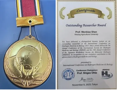 在今年3月份,“2025国际氢能大会暨国际氢能及燃料电池产业展览会”(简称“国际氢能大会”)在北京・国家会议中心举办。作为我国氢能产业链最完整的会展平台之一,汇聚超400家领军企业,行业龙头、能源央国企、科研机构及国际专家将共探氢能高质量发展路径。此次展览中氢草莓、氢大米等氢能与农业交叉领域的前沿应用产品重磅亮相(展位号:二期 A-152-2),全方位展示氢能在农业领域的创新应用成果。相关信息报道登上央视朝闻天下栏目。8月27日,由中国氢能联盟、国家能源集团联合鄂尔多斯市人民政府主办的2025年氢能专精特新创业大赛决赛在内蒙古鄂尔多斯市伊金霍洛旗举办。自2025年3月启动以来累计吸引400余家企业参赛,大赛设立“创新创业”与“技术攻坚”双赛道,下设专精特新企业技术路演赛、科技成果项目转化赛、氢能场景仿真技术应用赛、电解槽“氢能领跑者行动”挑战赛四项核心赛事。南京农业大学沈文飚教授团队凭借“从农场到餐桌的氢农业关键技术与运用”主题演讲,成功入围科转赛十强,成为农业领域氢能技术转化的代表性成果。11月7日至9日,国际氢医学与生物学会议(International Conference on Hydrogen Medicine & Biology:5th Annual Conference of the International Society for Hydrogen Medicine and Biology与14th Annual Conference of the Japanese Biomedical Society for Molecular Hydrogen联合会议)在日本东京顺天堂大学召开。期间,南京农业大学沈文飚教授受邀作题为“EMERGING HYDROGEN AGRICULTURE IN CHINA”的Keynote报告,并被授予杰出研究者奖章和证书,以表彰其在氢生物学发展中做出的贡献。11月30日,南京农业大学氢气生物学团队与法国液化空气集团开展合作,在上海青浦区建立农业合作与示范基地,主要研究富氢水在水稻、蔬菜、水果栽培中的应用。相关成果登上《人民日报》要闻,展示了氢能作为清洁能源未来在解决传统农业难题上的巨大潜力,为中国的绿色转型和乡村振兴提供了一个充满希望的方向。