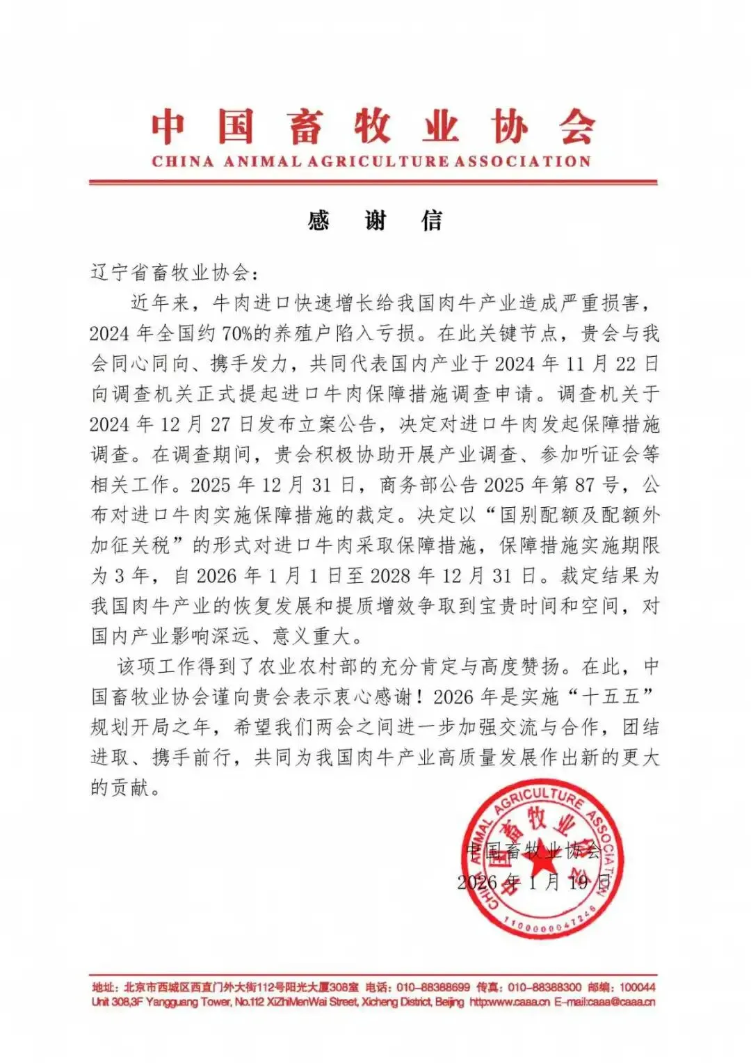 喜讯!喜讯!热烈祝贺辽宁省畜牧业协会荣获中国畜牧业协会的表扬!