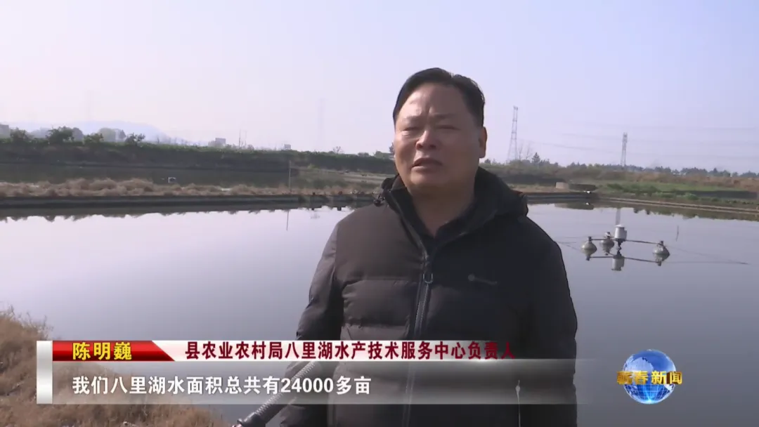 县农业农村局八里湖水产技术服务中心负责人 陈明巍:我们八里湖水面积总共有24000多亩,到了生产的季节,我们指导他们科学养殖。