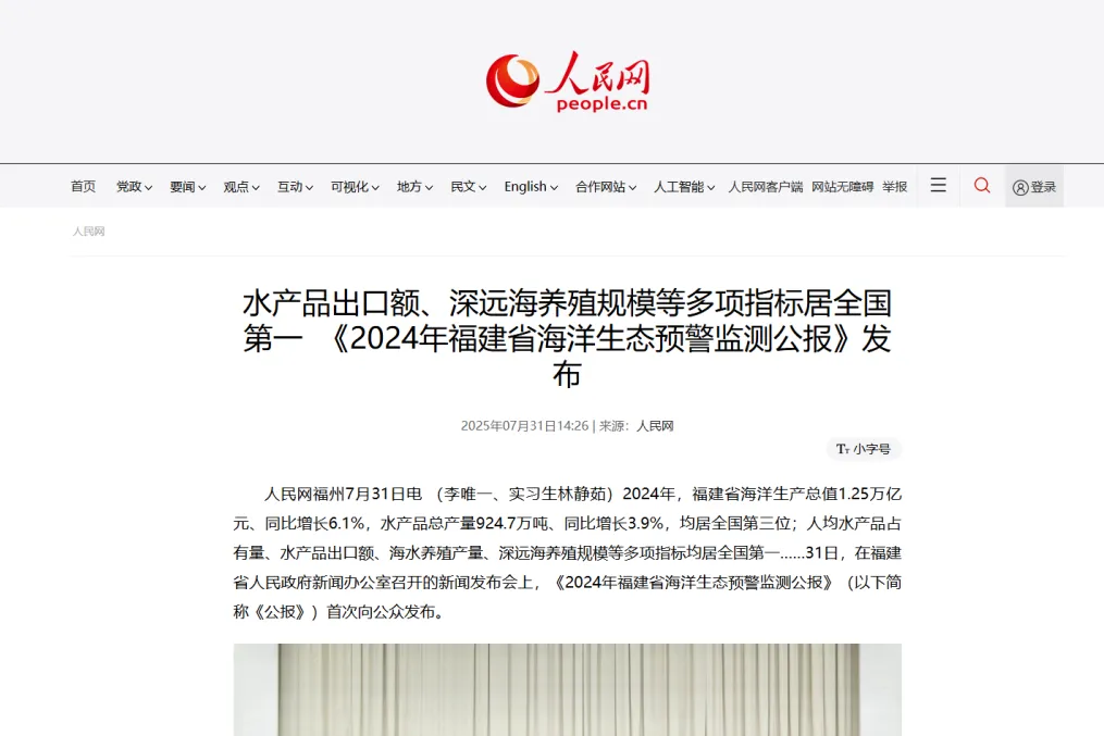 6月17日,第十七届海峡论坛期间,举办首届闽台渔业合作论坛,成立海峡两岸海洋经济促进会,搭建两岸海洋渔业领域常态化交流沟通新平台。首次出台台资企业养殖保险优惠、科研项目申报政策。首次主办中国-东盟海洋产业合作发展圆桌会,首次举办中国侨智发展大会“联侨汇智”海洋经济领域人才交流体验活动。与加拿大、马耳他、马尔代夫、马来西亚、印尼等10多个国家开展海洋产业合作对接。7月17日,2025年国际渔业科技与创新大会首次落地福建,吸引美国、加拿大等16个国家100多名专家学者参会,助力全球渔业可持续发展。首次申请设立联合国框架下条约办事机构——海洋生物多样性(BBNJ)协定秘书处。首次成立福建国际海洋与渔业交流合作中心,全力打造海洋与渔业领域交流对接国际枢纽。加强闽宁渔业协作,选派技术专家组首次突破苗种长距离运输、本地养殖技术,构建“福建技术+宁夏资源+市场导向”“海鱼陆养”全产业链体系。加强援疆工作,创新构建对虾高效养殖体系,有效破解了新疆昌吉州对虾养殖的技术瓶颈。
