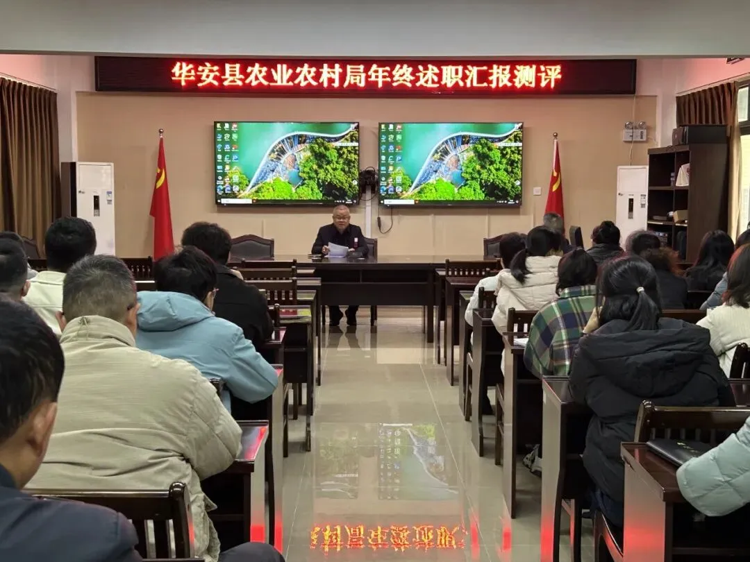 1月22日,华安县农业农村局召开2025年度述职测评大会。会议旨在以“述”明责、以“评”问效,通过对全体干部职工履职情况的全面考核,深入明晰短板弱项,系统谋划后续工作,紧盯重点环节,进一步压紧压实主体责任,为扎实推进新一年度农业农村工作奠定坚实基础。