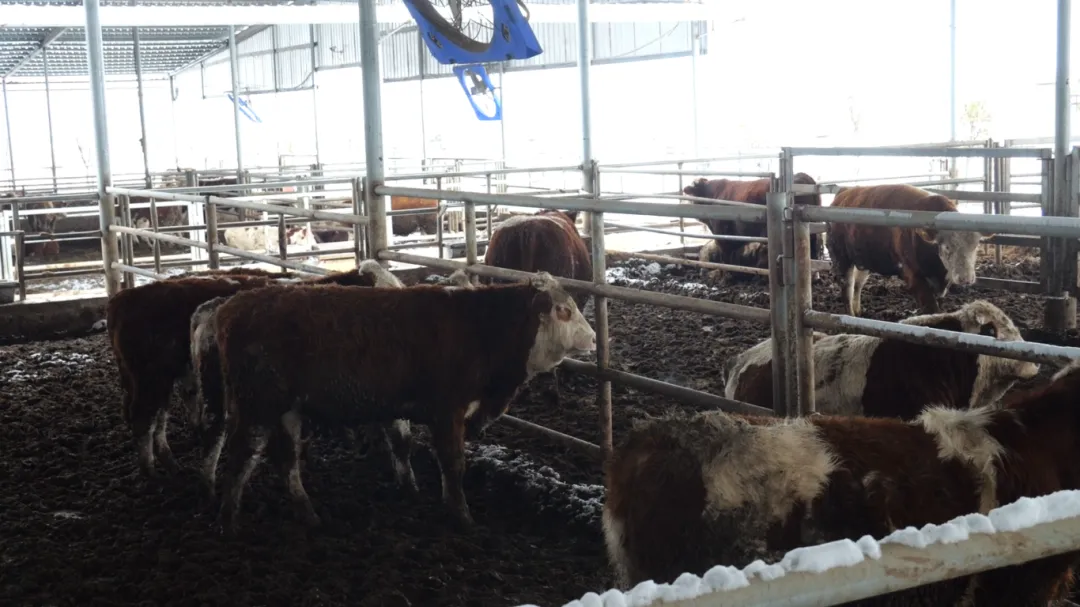 针对肉牛养殖,技术人员特别强调,雪后圈舍温度需保持在5℃以上,可通过增设保温帘、铺垫干燥稻草等方式提升保暖效果,同时要及时清理圈舍内的积雪和粪污,避免潮湿环境引发蹄病;饲喂上需增加玉米、豆粕等能量饲料占比,适当补充维生素和矿物质,增强牛群抗寒能力。