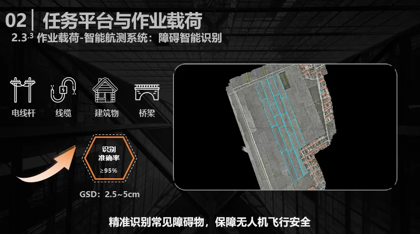 基于上述智能航测系统,首要任务是实现地块范围的精准划定,既可以将单一地块作为无人机的作业区域,也能够通过多地块合并拓展飞行范围。其次是完成障碍物的精准识别,农村地区的常见障碍物主要包括电线杆、线缆、建筑物和桥梁等。需要明确的一项指标是地面采样分辨率,其含义是无人机在特定飞行高度下,图像中单个像素点对应的地面实际长度。为保障飞行安全,要求该分辨率控制在2.5-5厘米区间,且障碍物识别的适配准确率需高于95%。