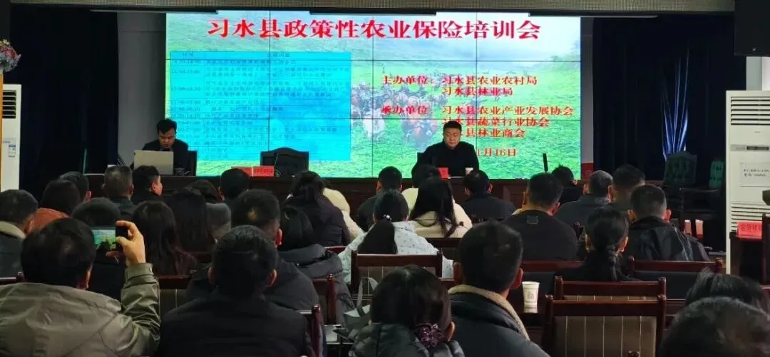 2025年1月16日下午,由习水县农业农村局、习水县林业局主办,习水县农业产业发展协会、习水县林业商会、习水县蔬菜行业协会共同承办的政策性农业保险培训会在县农业农村局五楼会议室成功举办。会议旨在深入解读农业金融支持政策,提升农业经营主体的风险抵御能力和融资便利性,为我县农业产业高质量发展注入金融活力。