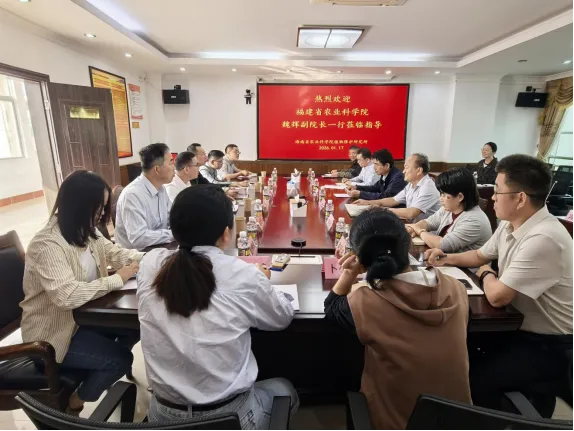 2026年1月17日,福建省农业科学院党委委员、副院长魏辉率该院资源与环境研究所书记、所长王飞,植物保护研究所书记、所长张玉树、副所长刘裴清、赵建伟及科研骨干一行到访我院植保所,与我院就热带农业科技创新、平台共建、人才培养等议题开展深入调研交流。吉训聪所长主持会议,院党组成员、副院长邱化蛟,环境与土壤研究所所长张文、植物保护研究所相关科技人员参加座谈。