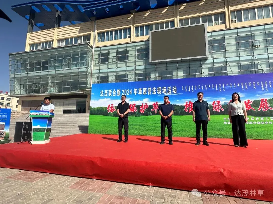 6月26日,达茂联合旗林业和草原局组织开展了全旗“达茂联合旗2024年草原普法宣传活动”,活动以“依法保护草原,推动绿色发展”为主题,旨在全面贯彻落实党中央关于生态文明建设的总体部署和习近平总书记考察内蒙古重要讲话重要指示批示精神,进一步普及草原法律法规知识,实现林草资源永续利用,营造全社会关心草原、依法保护草原的浓厚氛围。包头市林业和草原局副局长王金龙、旗人民政府副旗长党晓宏等领导出席活动。旗林业和草原局局长苏建军主持本次活动。