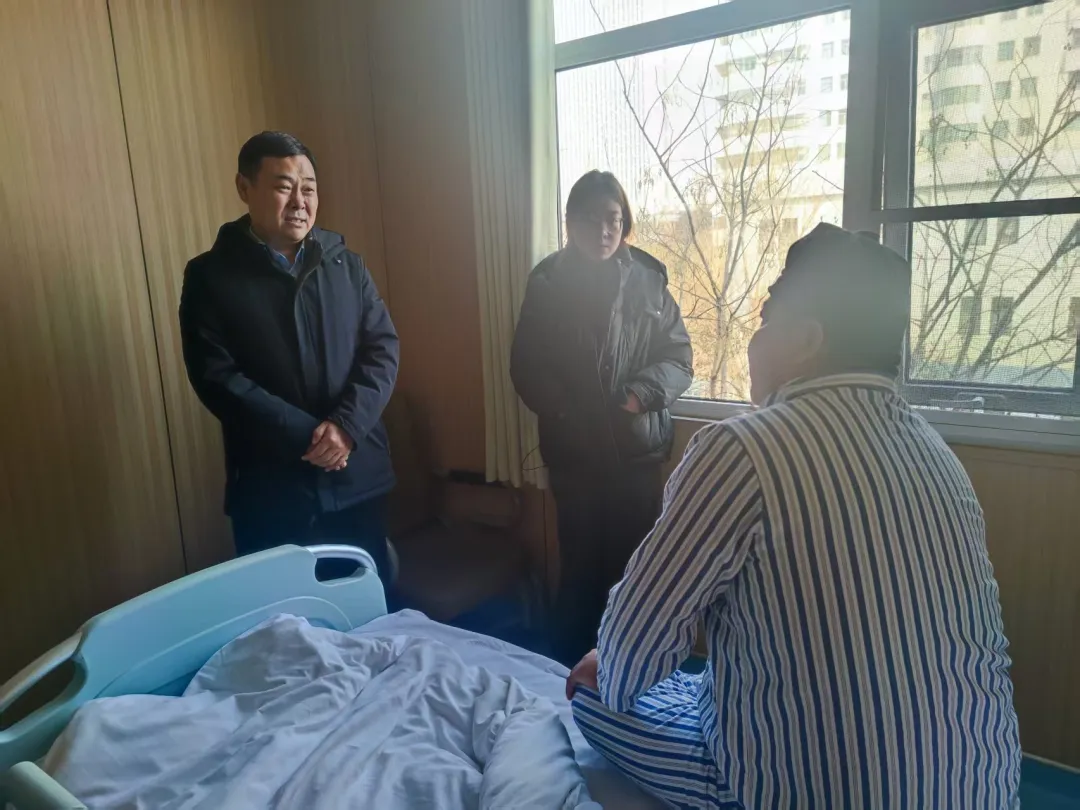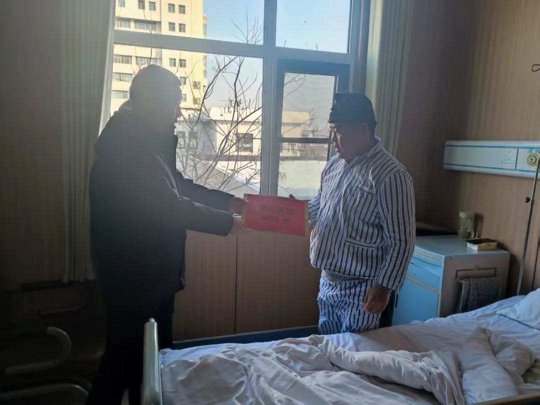 1月23日上午,峄城区畜牧渔业事业发展中心一行人,走进枣庄市立医院病房,探望正在这里与病魔斗争的杨列刚同志,并将一份承载着全体同事牵挂与祝福的爱心捐款,郑重交到他的手中。