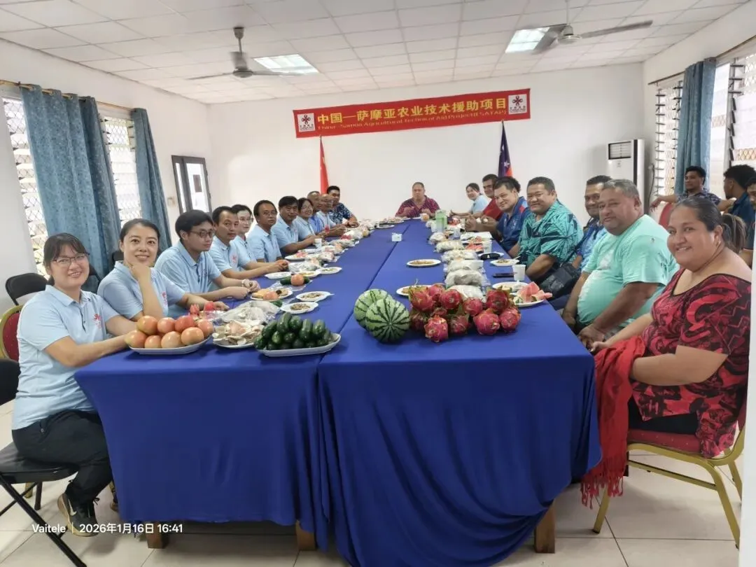 2026年1月16日,援萨摩亚第六期农业技术援助项目专家组于中萨示范农场成功举办蔬果蘑菇新品种品鉴会。萨农业、渔业部(以下简称“萨农渔业部”)部长马亚瓦(Maiava)出席品鉴会并讲话,萨农渔业部及农科院首席执行官、各司局负责人、技术官员、农户代表等20人参与活动。