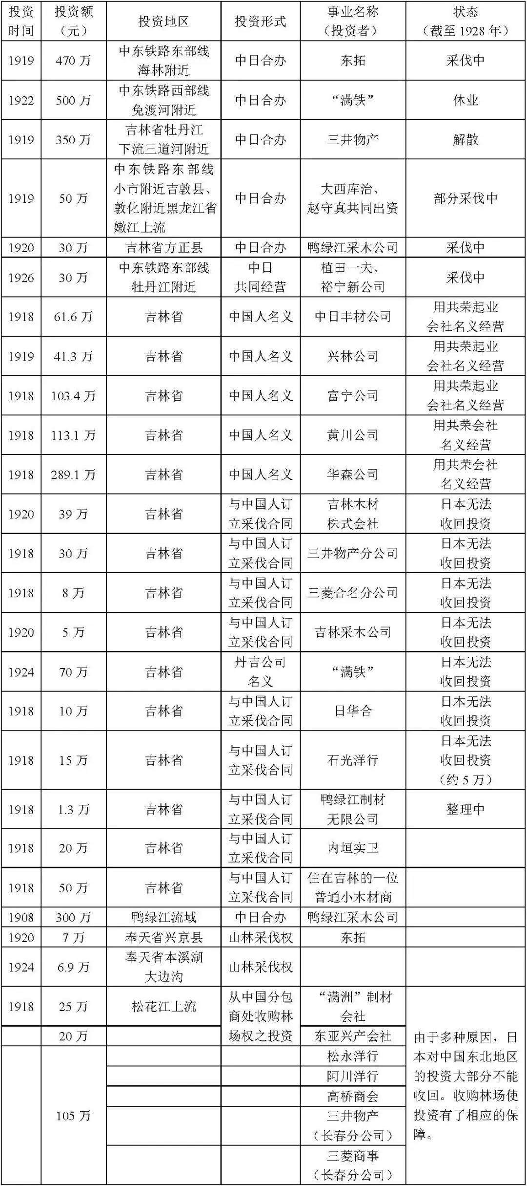 中国东北地区距日本较近,交通方便且森林资源蕴藏丰富。日本认为其可以凭借《吉黑两省金矿及森林借款合同》使财政困顿、还款困难的北洋政府履行抵押两省国有森林等合同义务,以改善日本木材供给不足的状况。基于此,日人对中国东三省林业投资之企业数量甚为可观。
