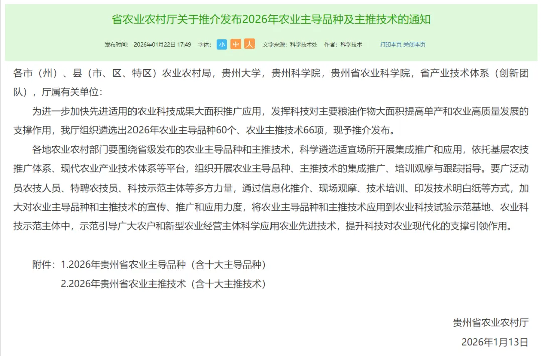 2.2026年贵州省农业主推技术(含十大主推技术)
