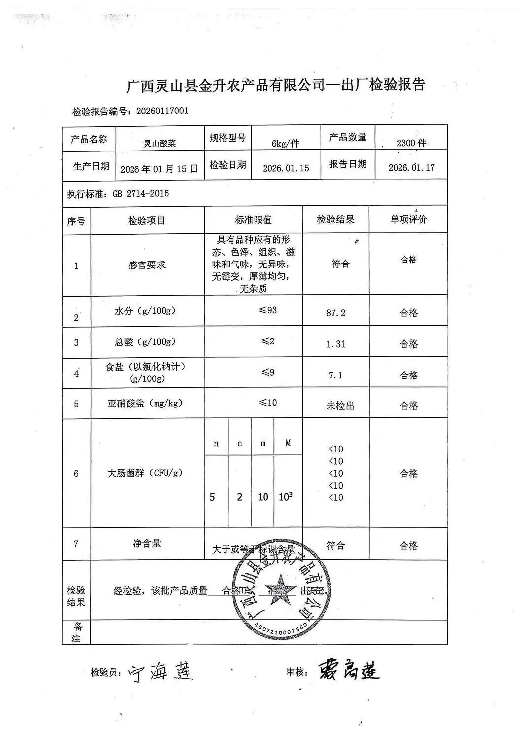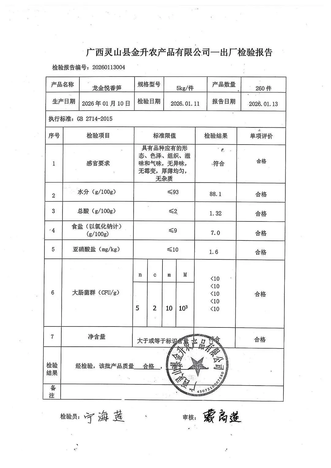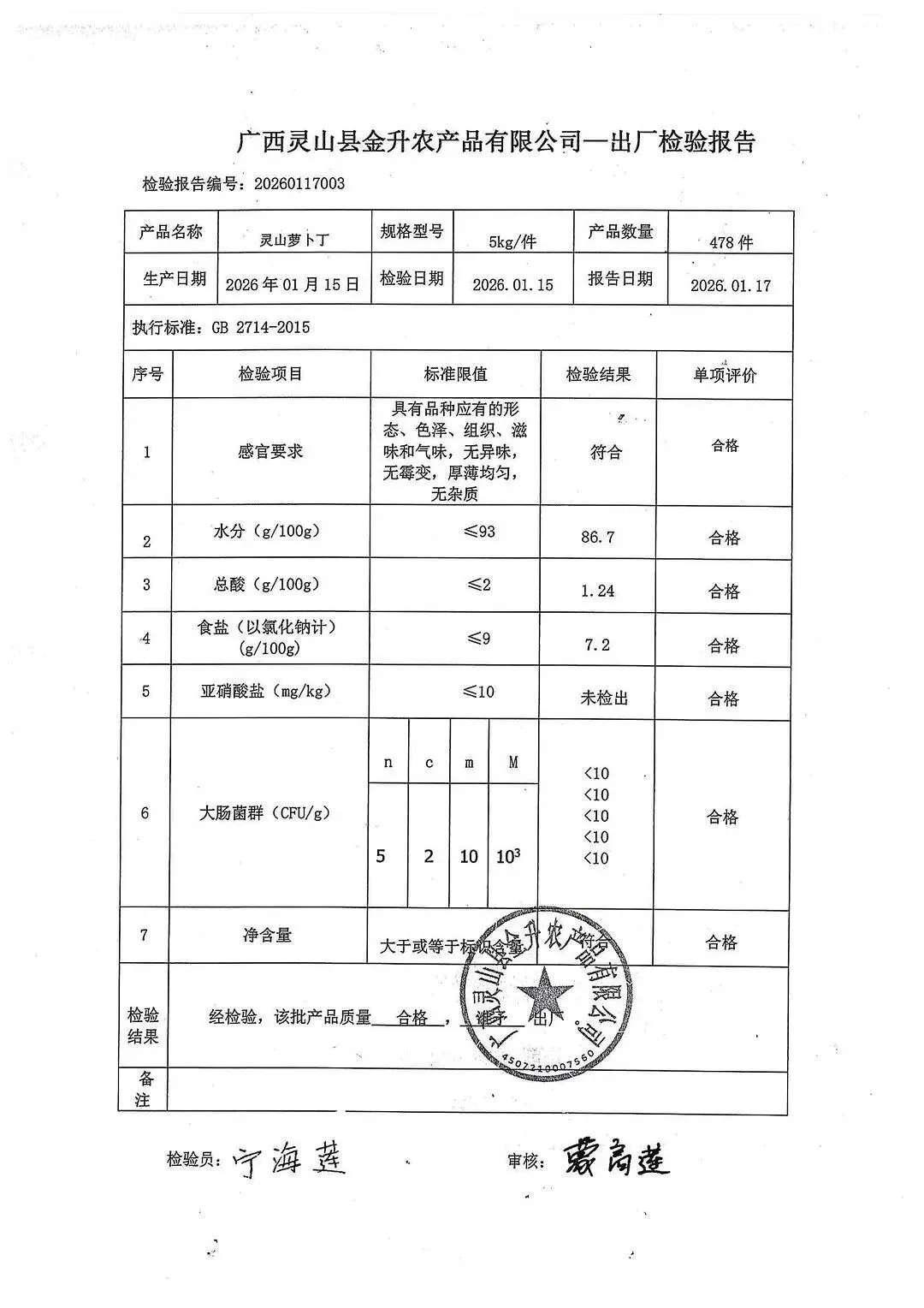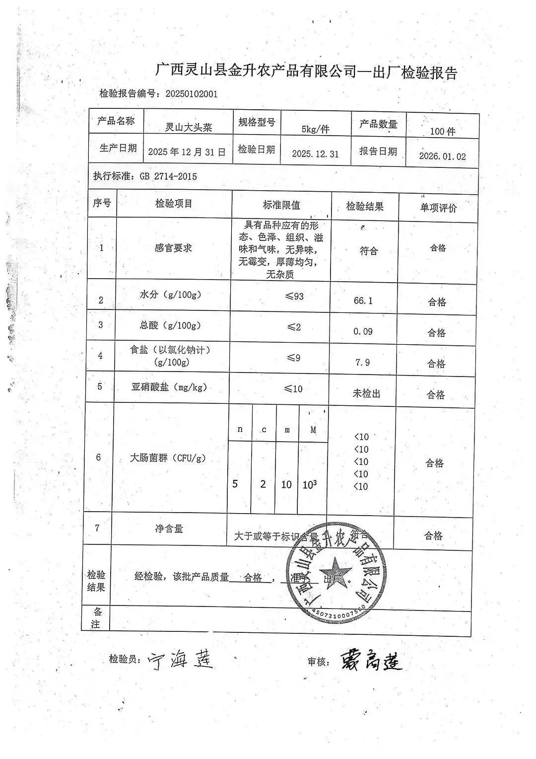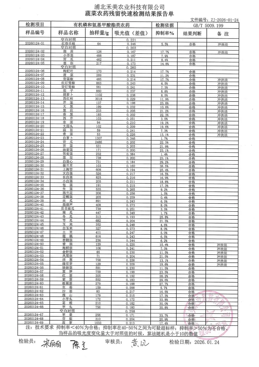>金浦供应链&禾美农业-01月25日蛋类、酱腌菜、肉类、蔬菜、水豆腐、鲜湿淀粉条检测 报告