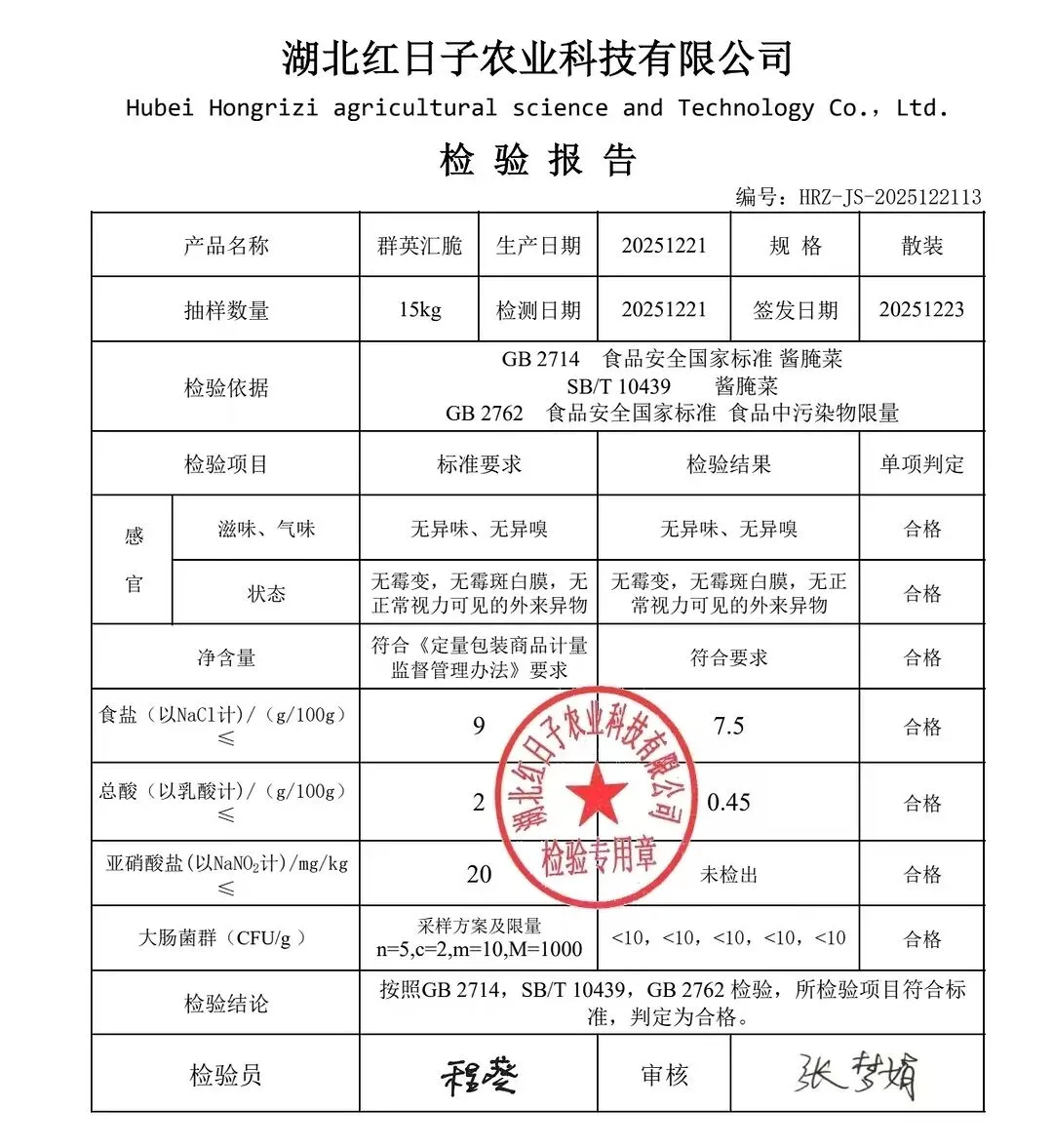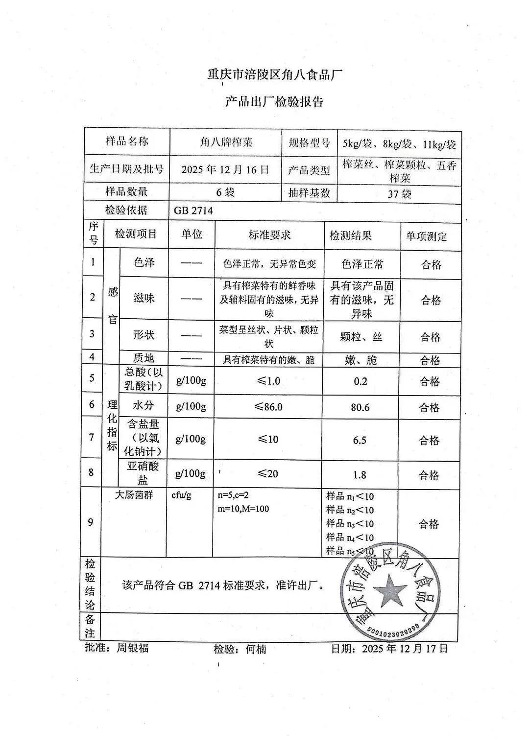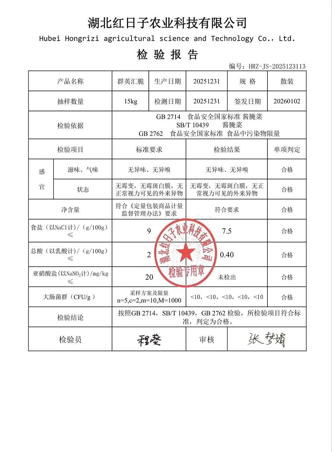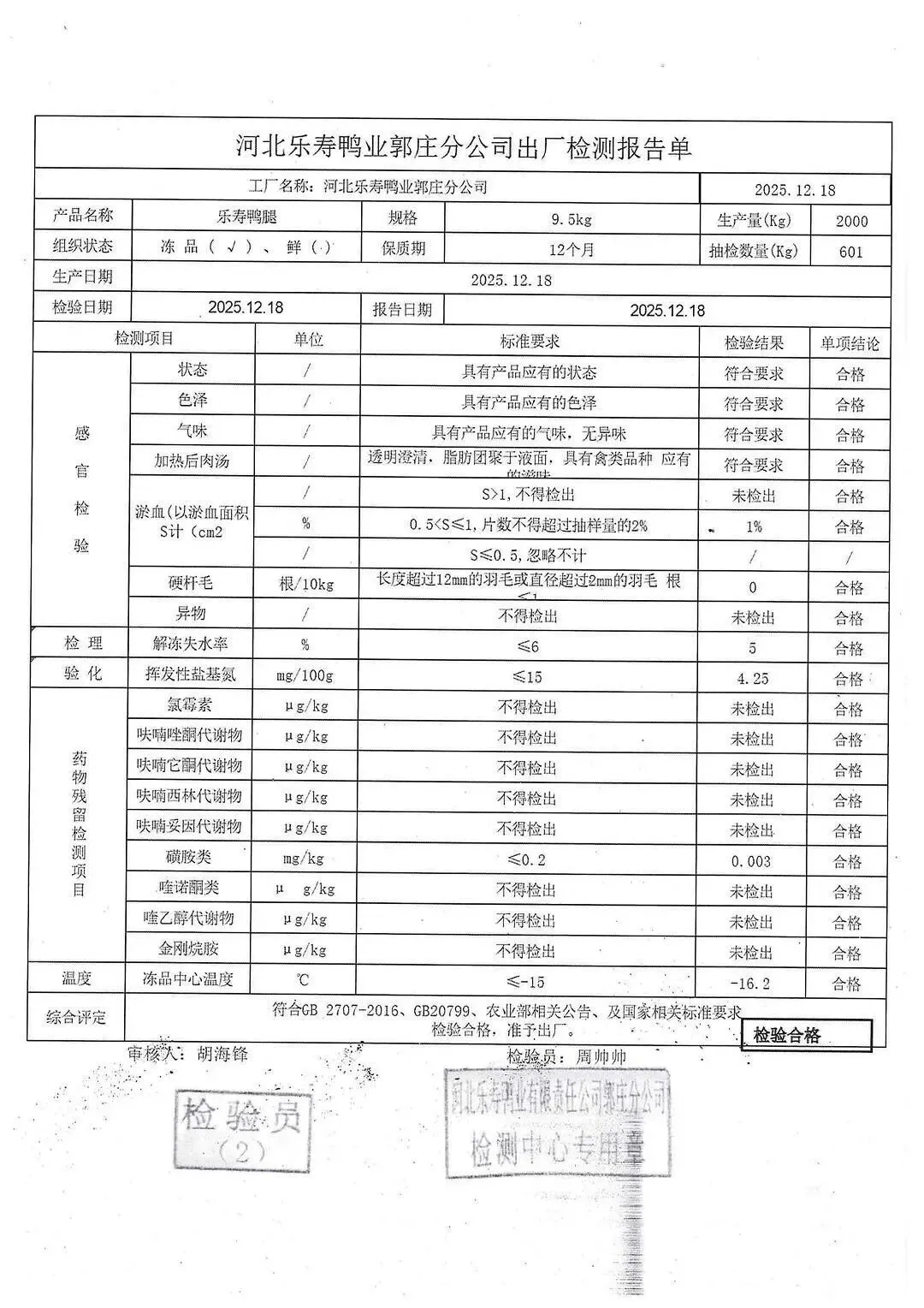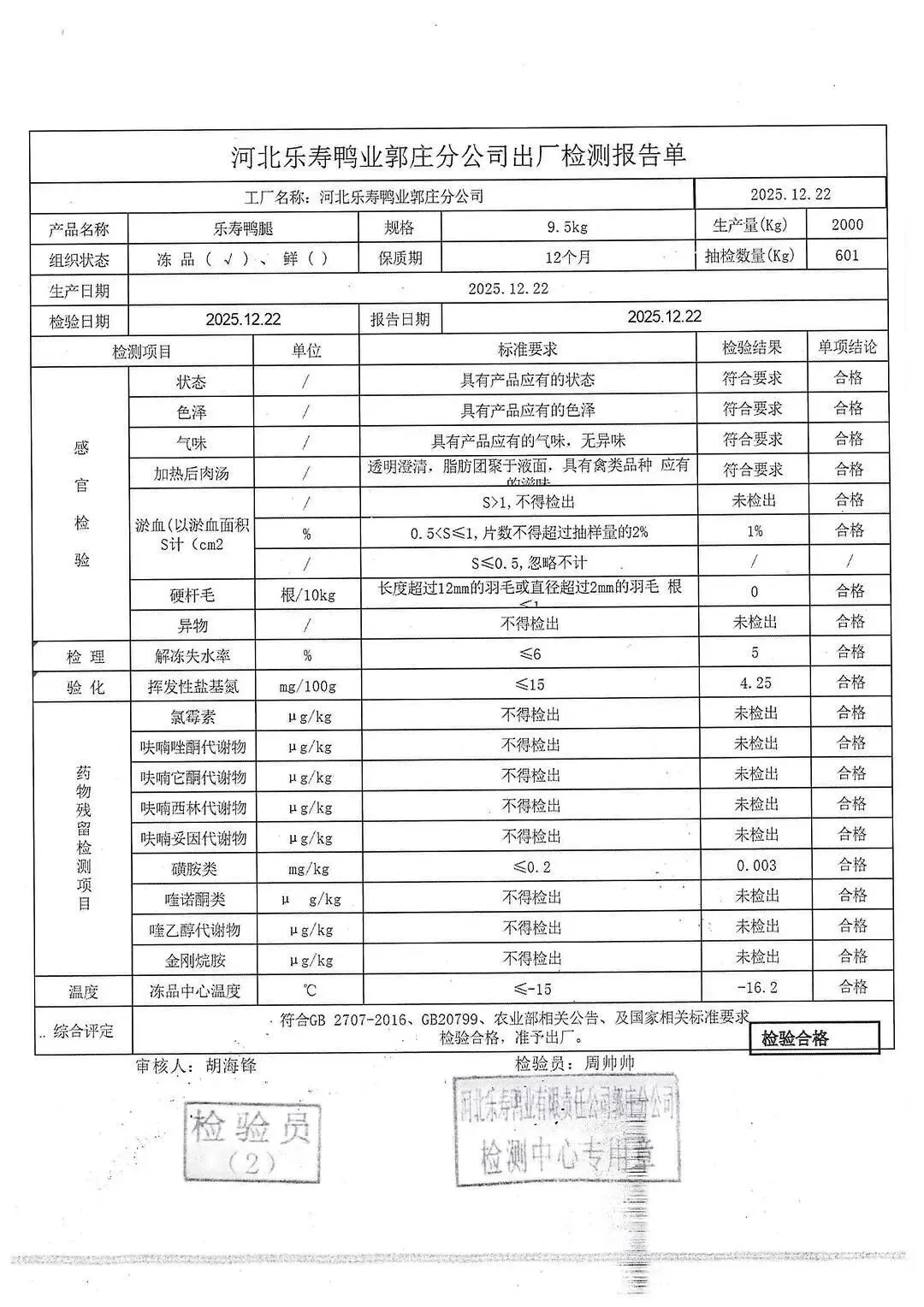 蛋类、酱腌菜、肉类、蔬菜、水豆腐、鲜湿淀粉条检测报告