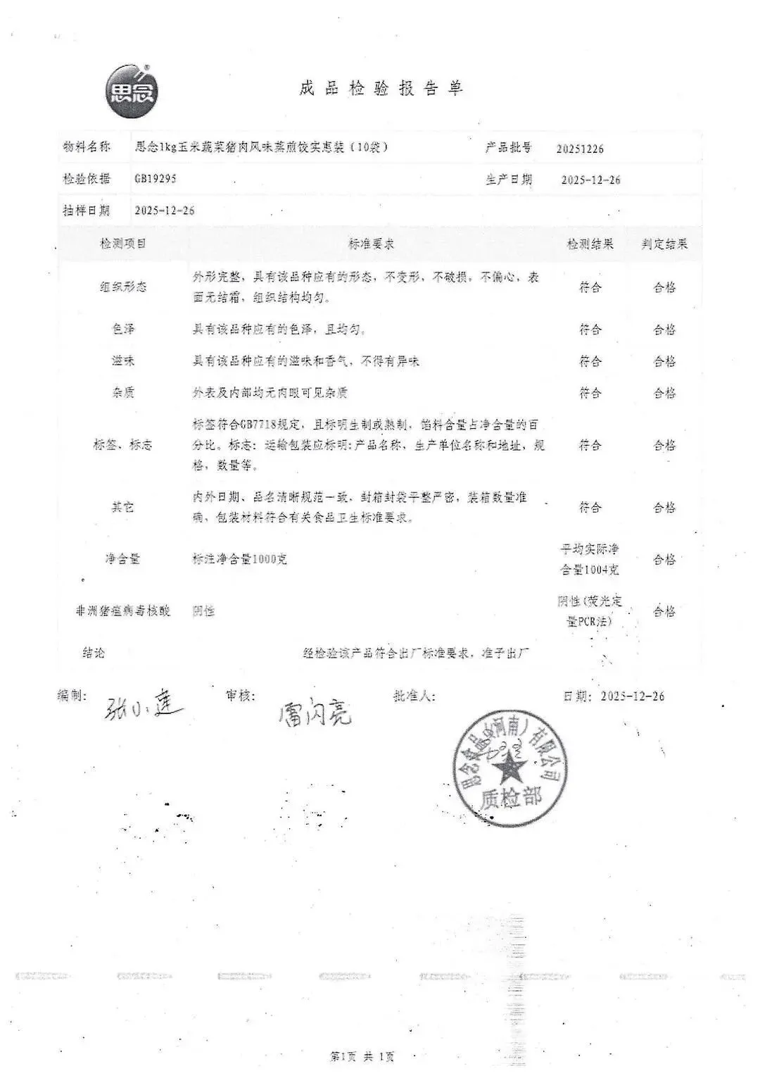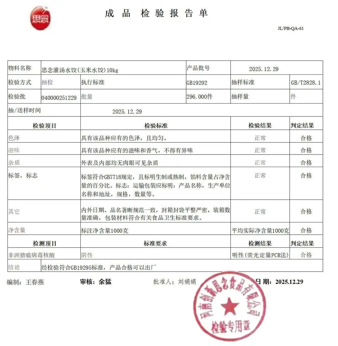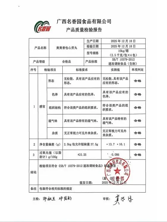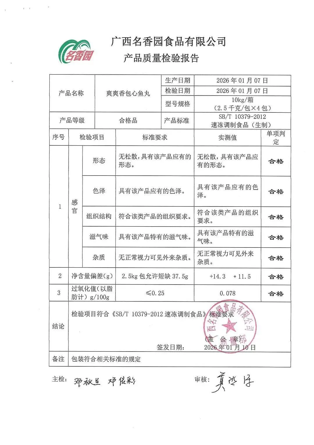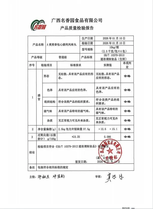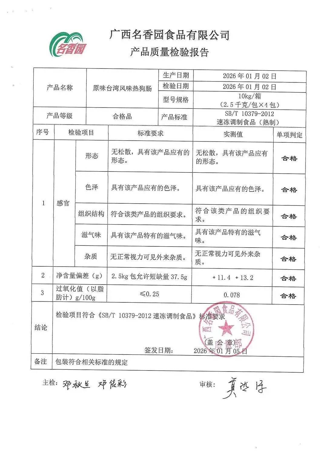 >金浦供应链&禾美农业-01月25日冻品、水饺、丸子、热狗、腊肠检测报告