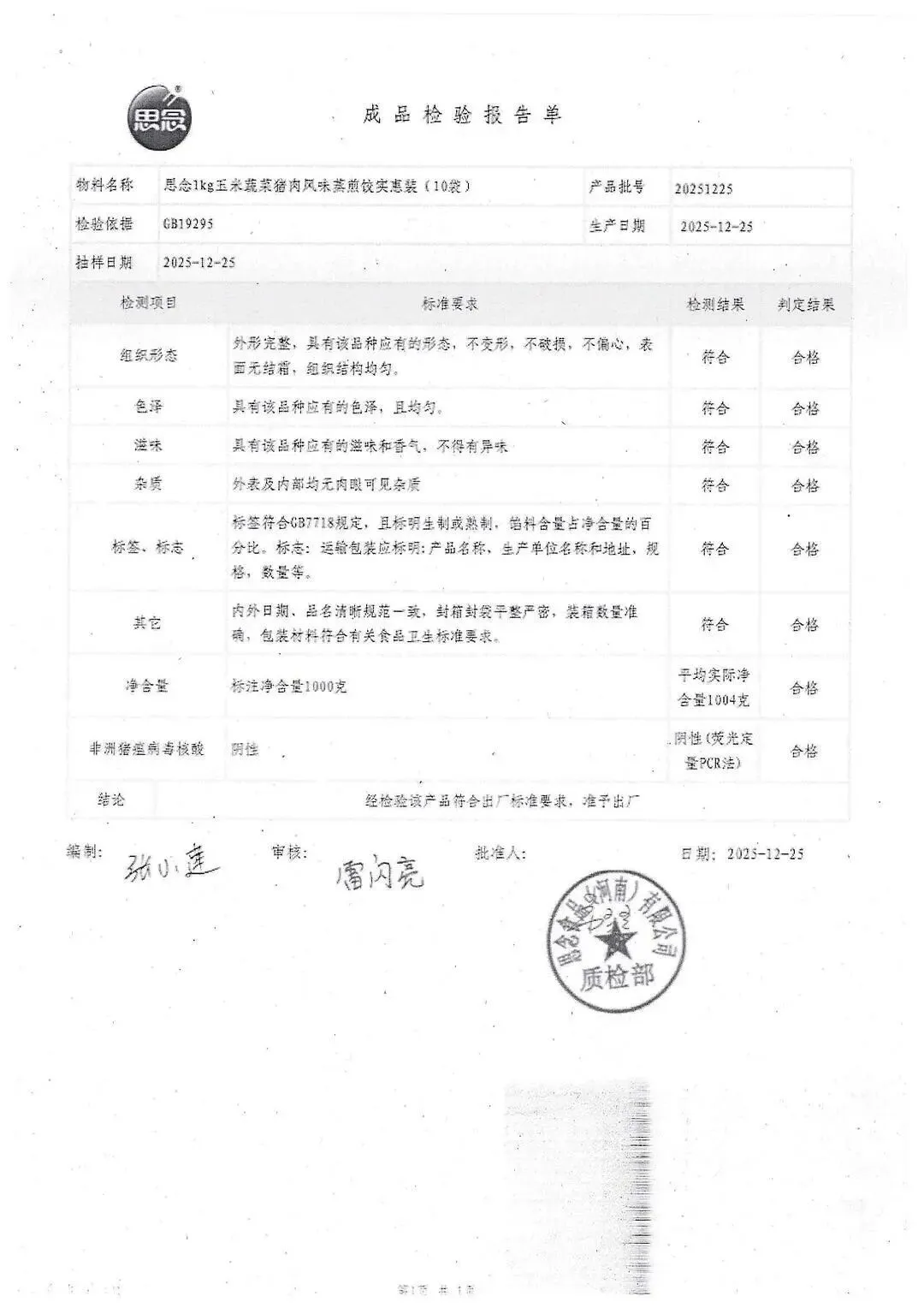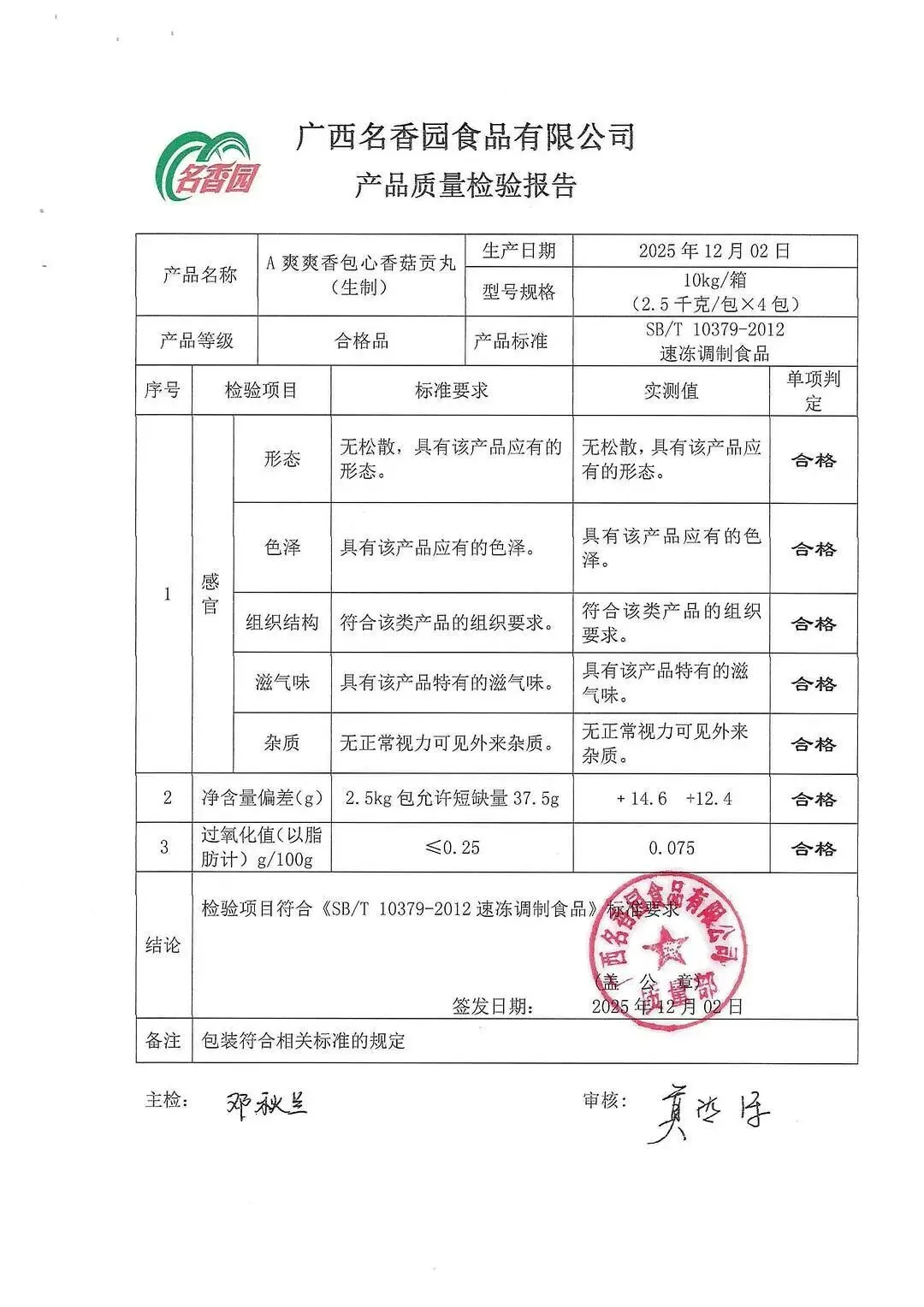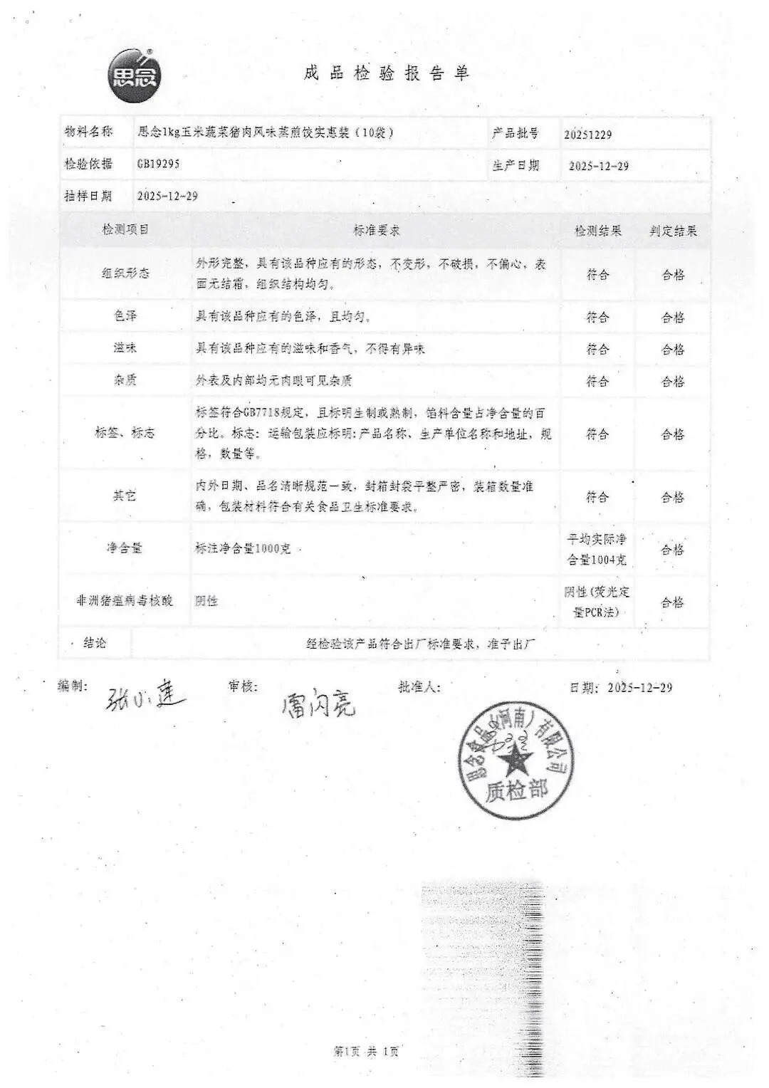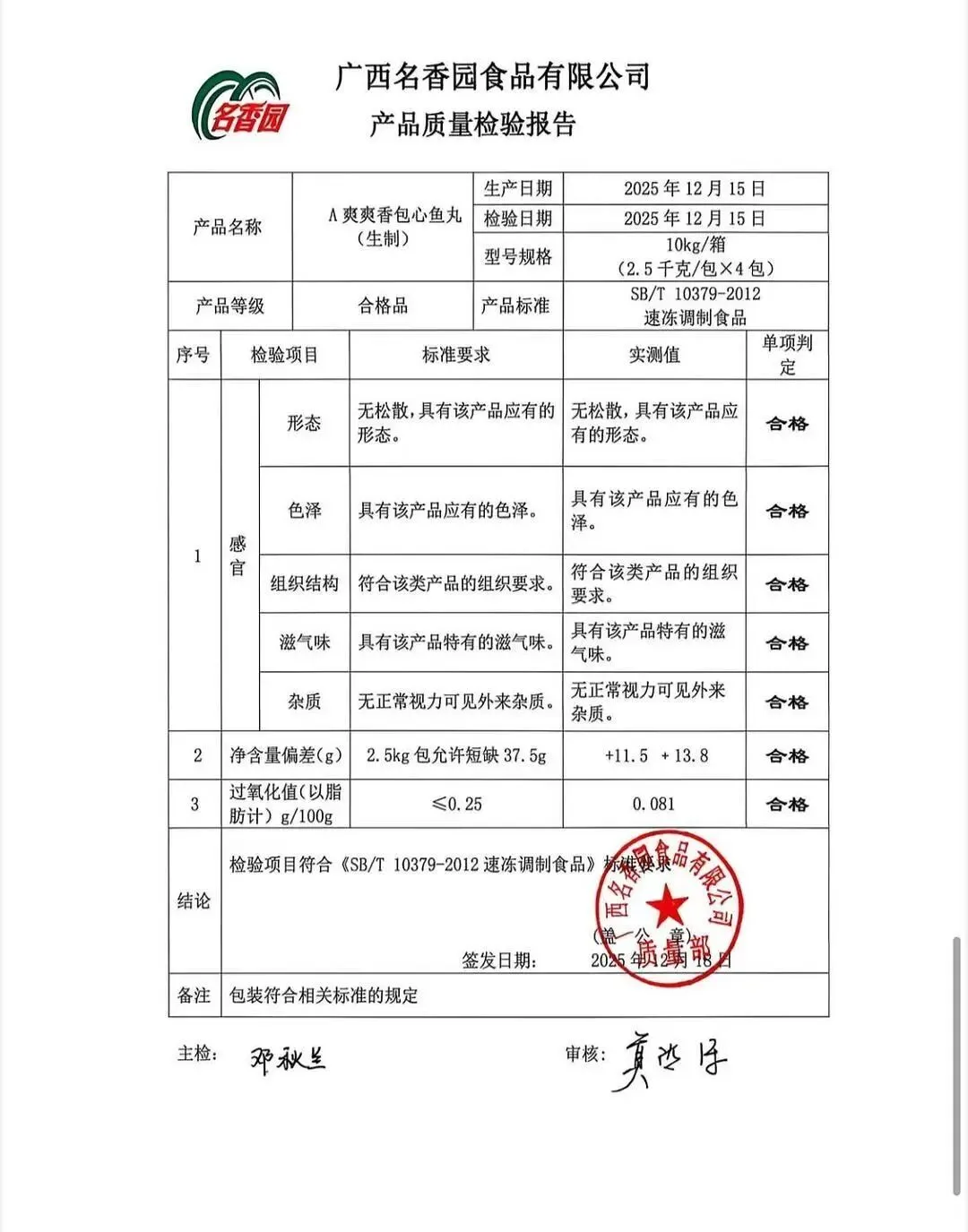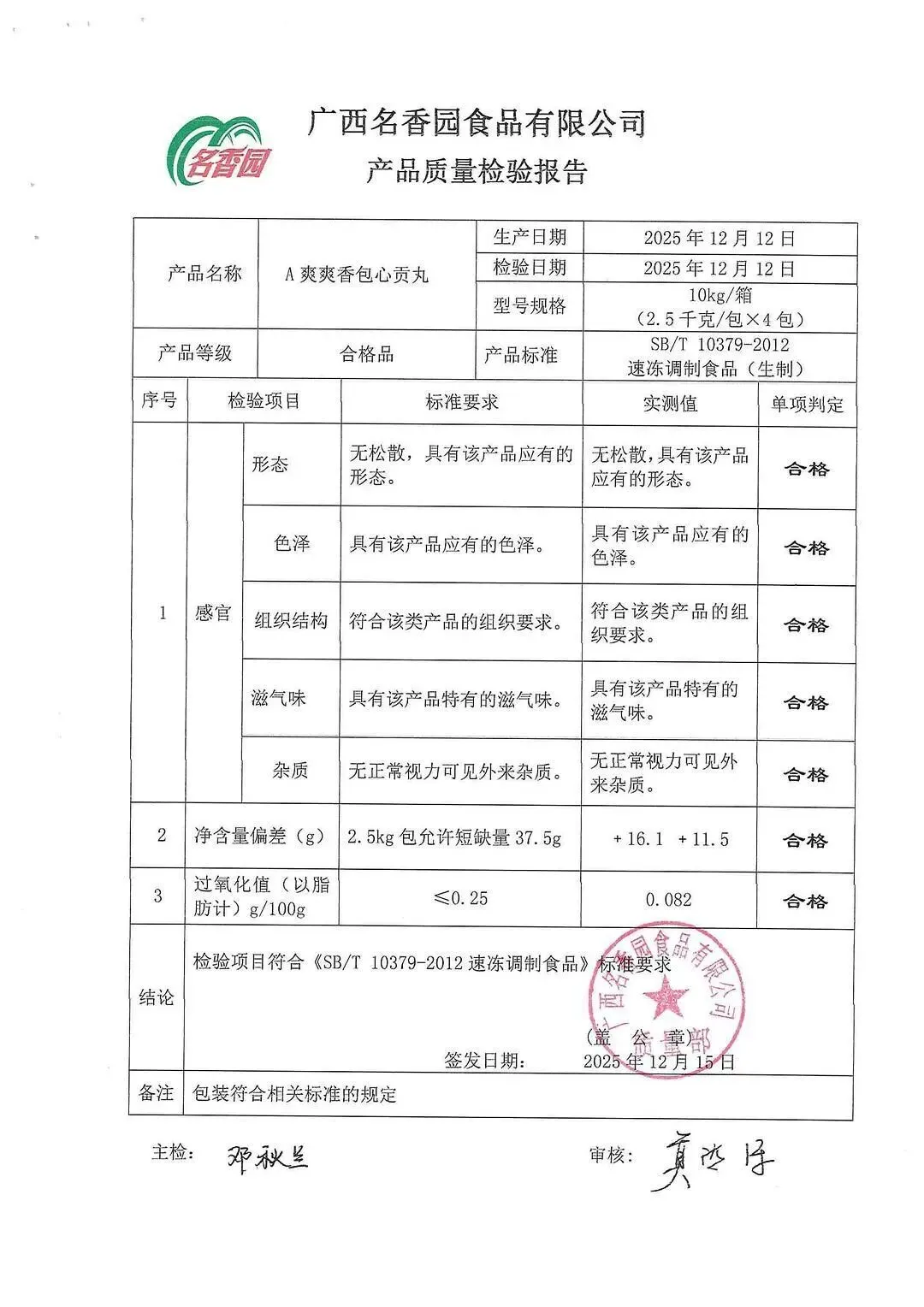 >金浦供应链&禾美农业-01月25日冻品、水饺、丸子、热狗、腊肠检测报告