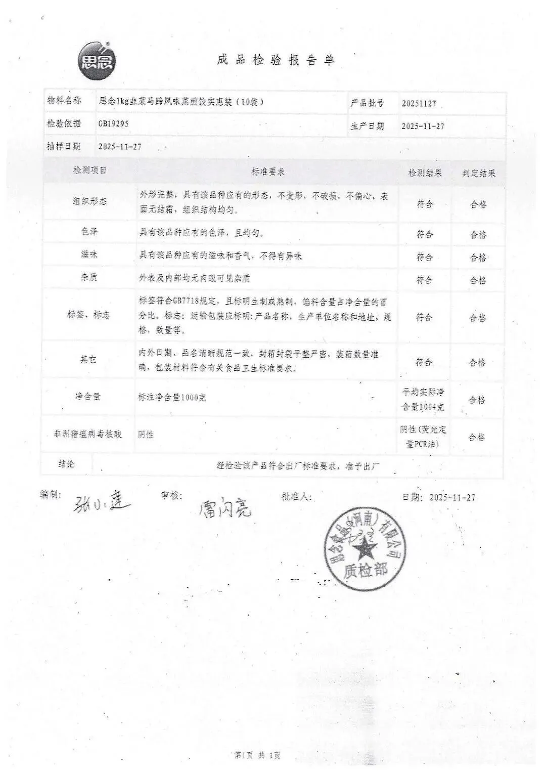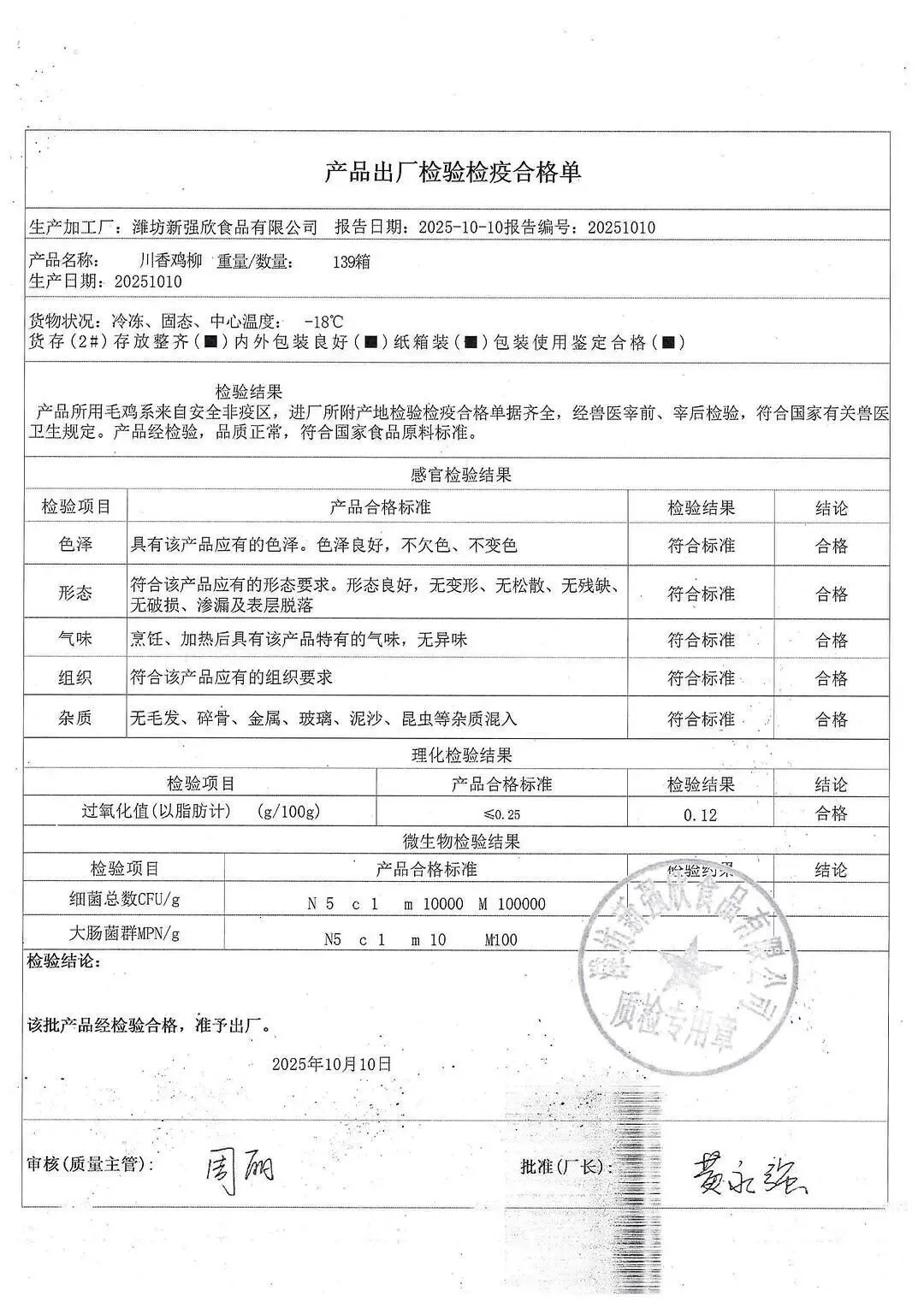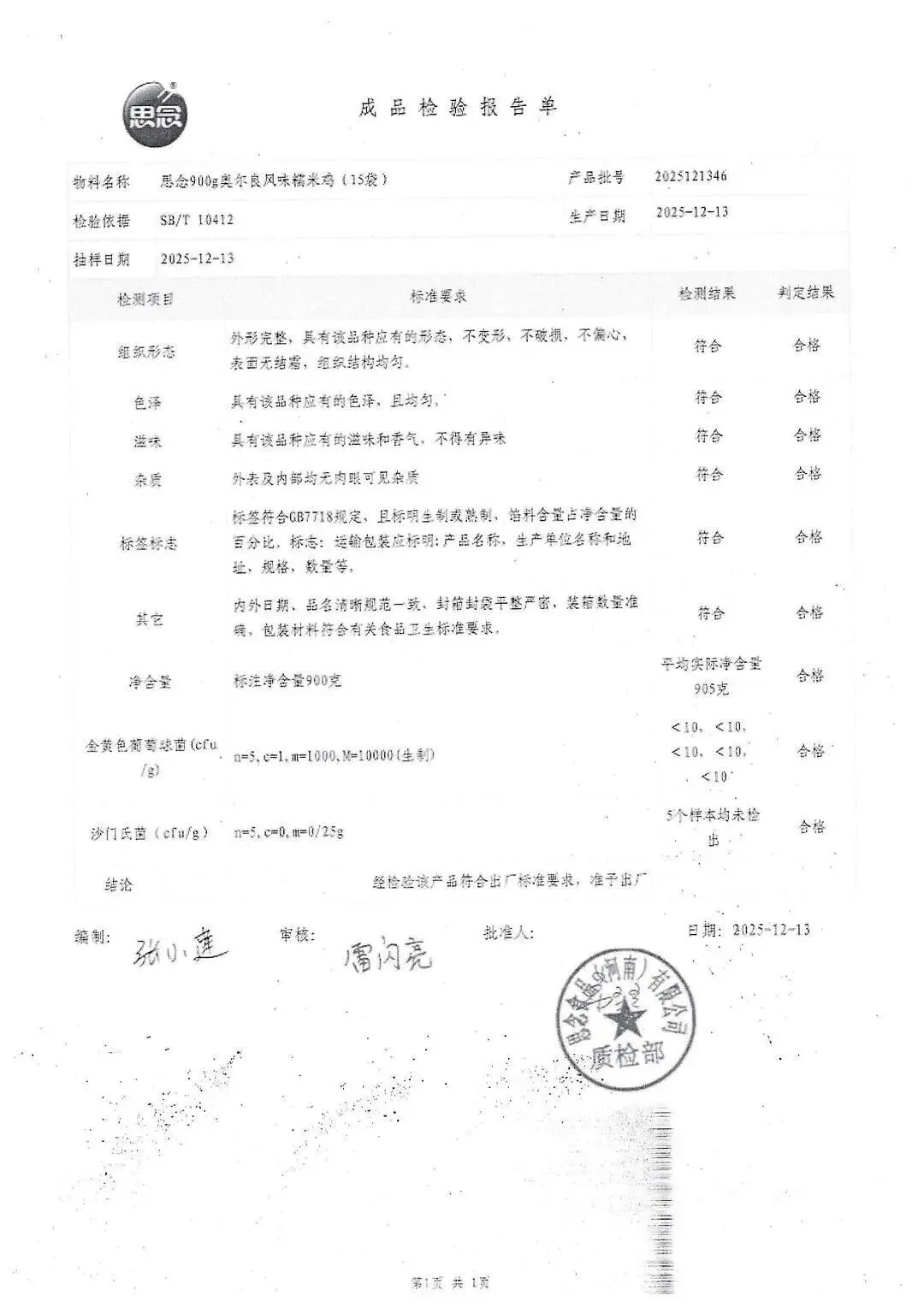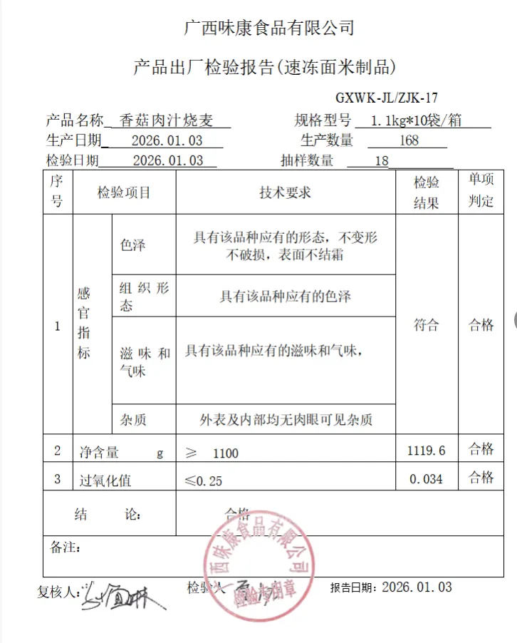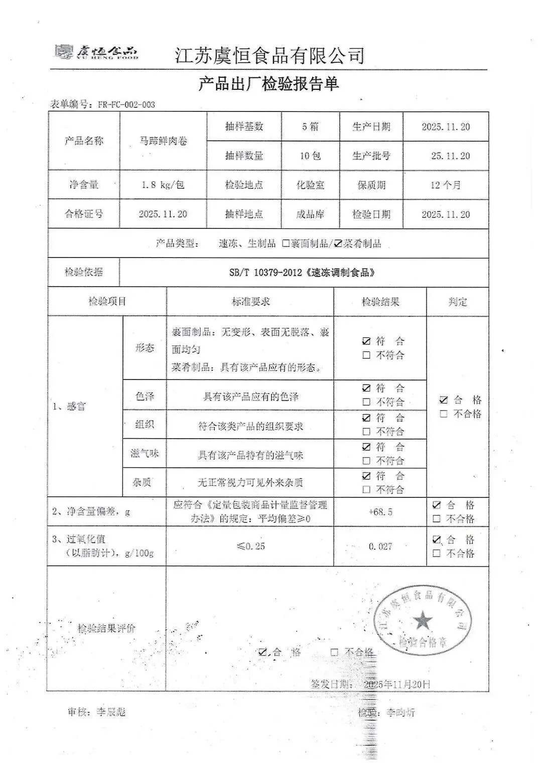 >金浦供应链&禾美农业-01月25日冻品、水饺、丸子、热狗、腊肠检测报告
