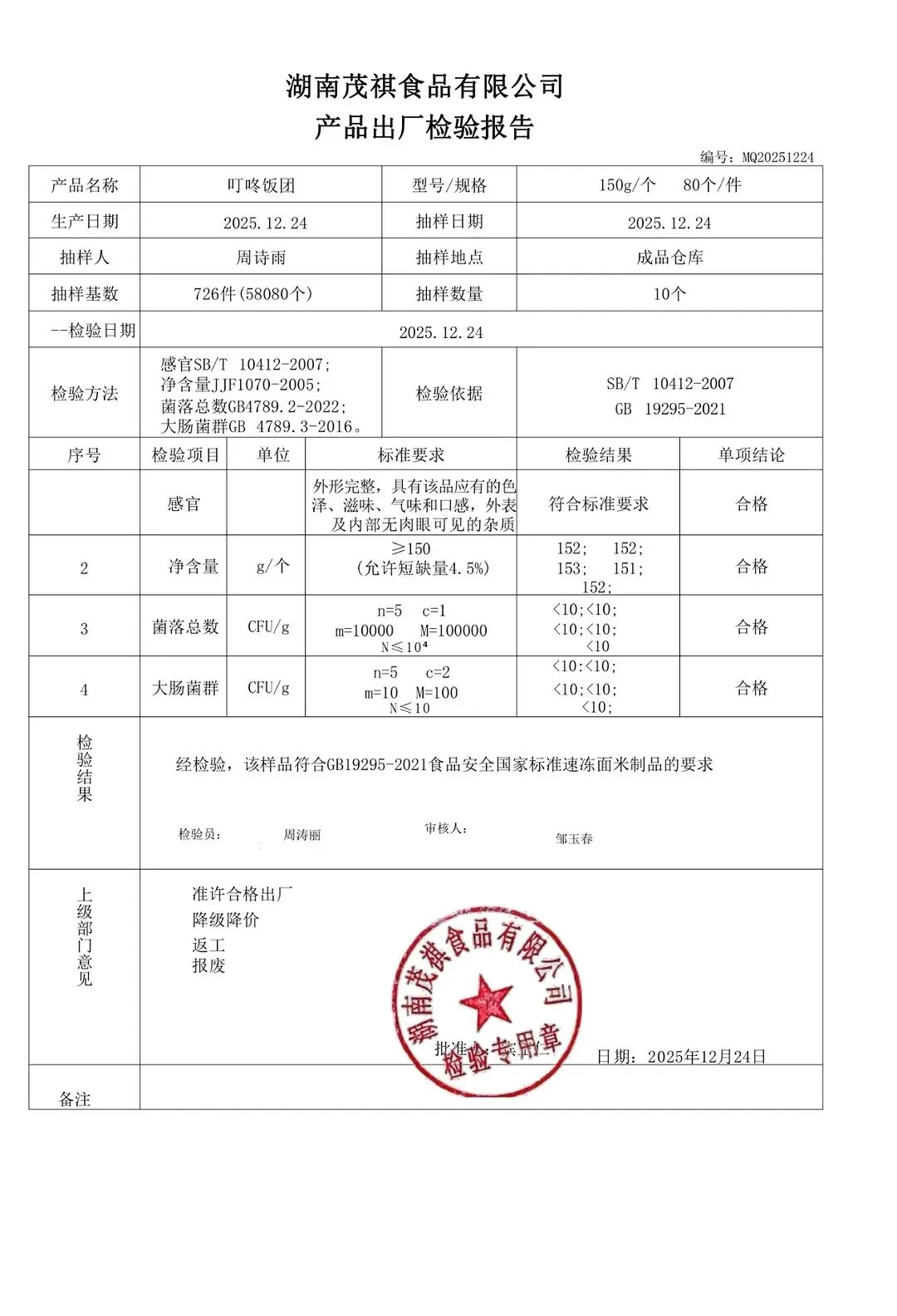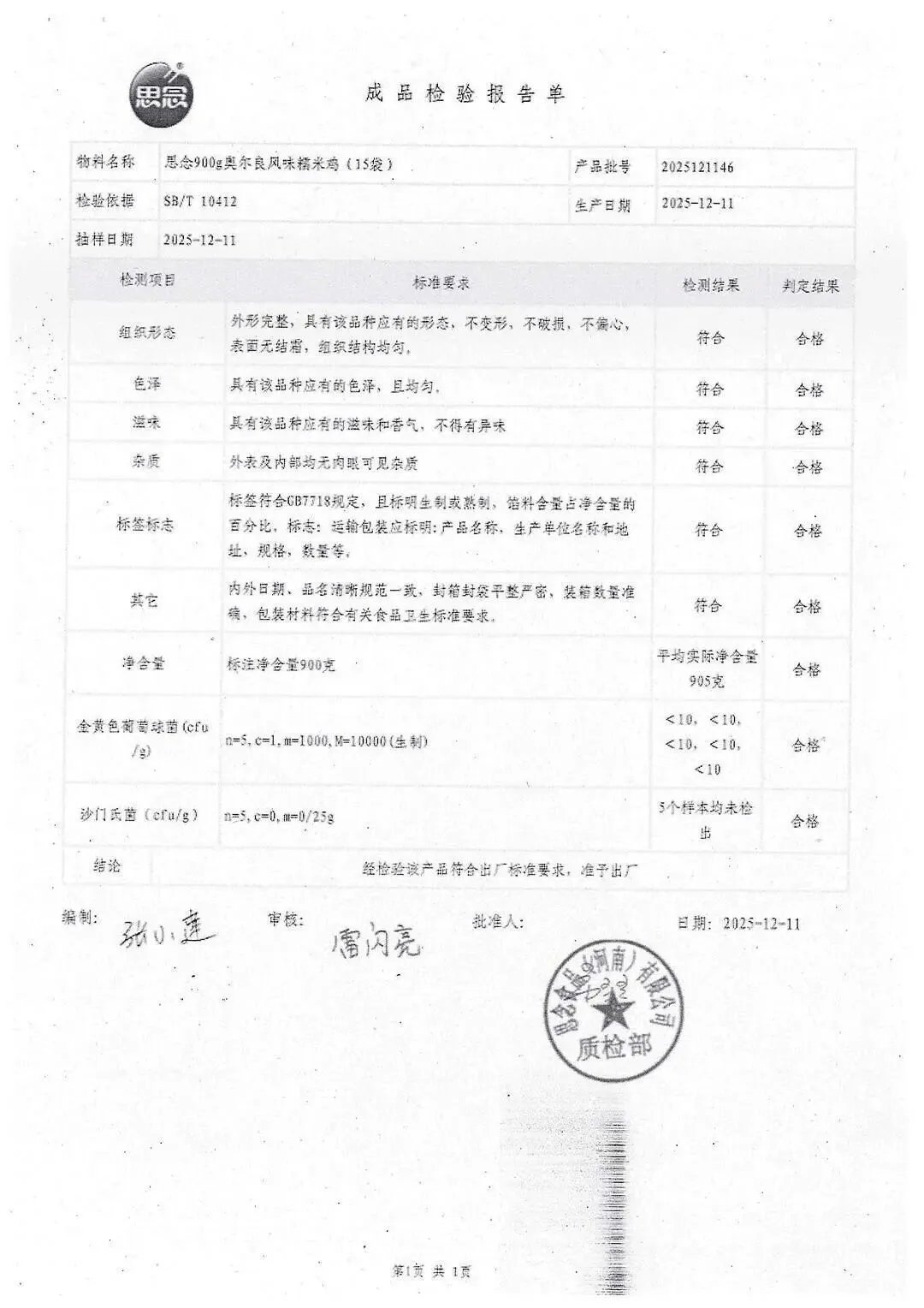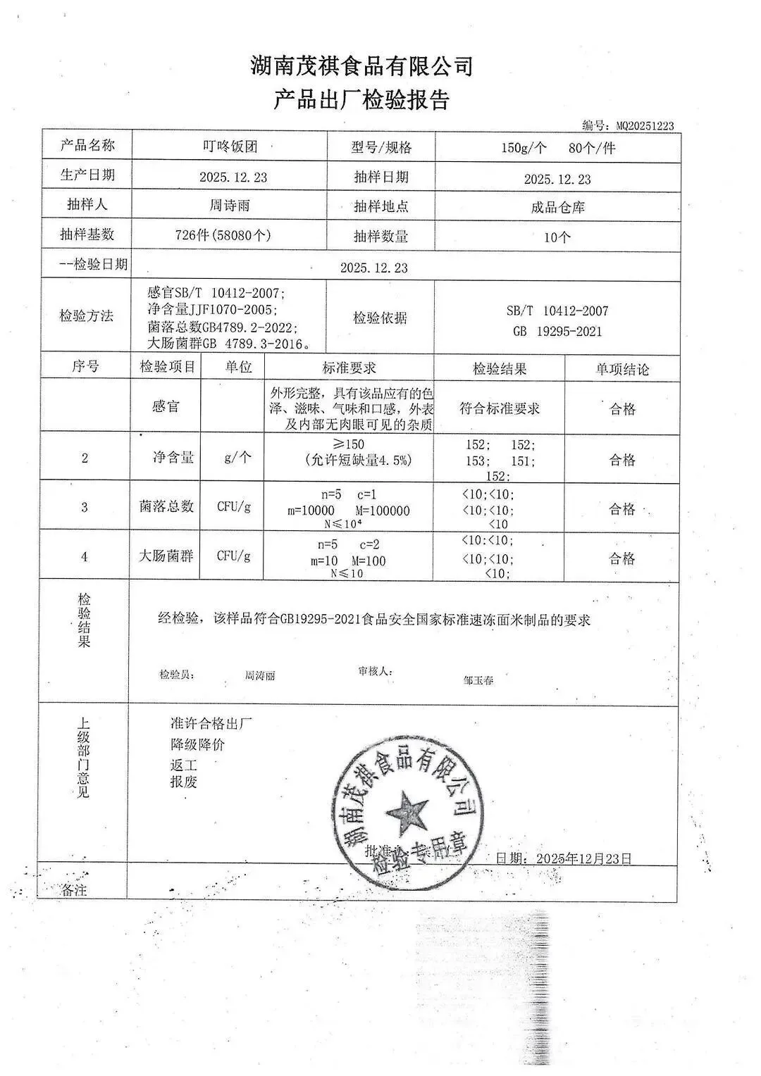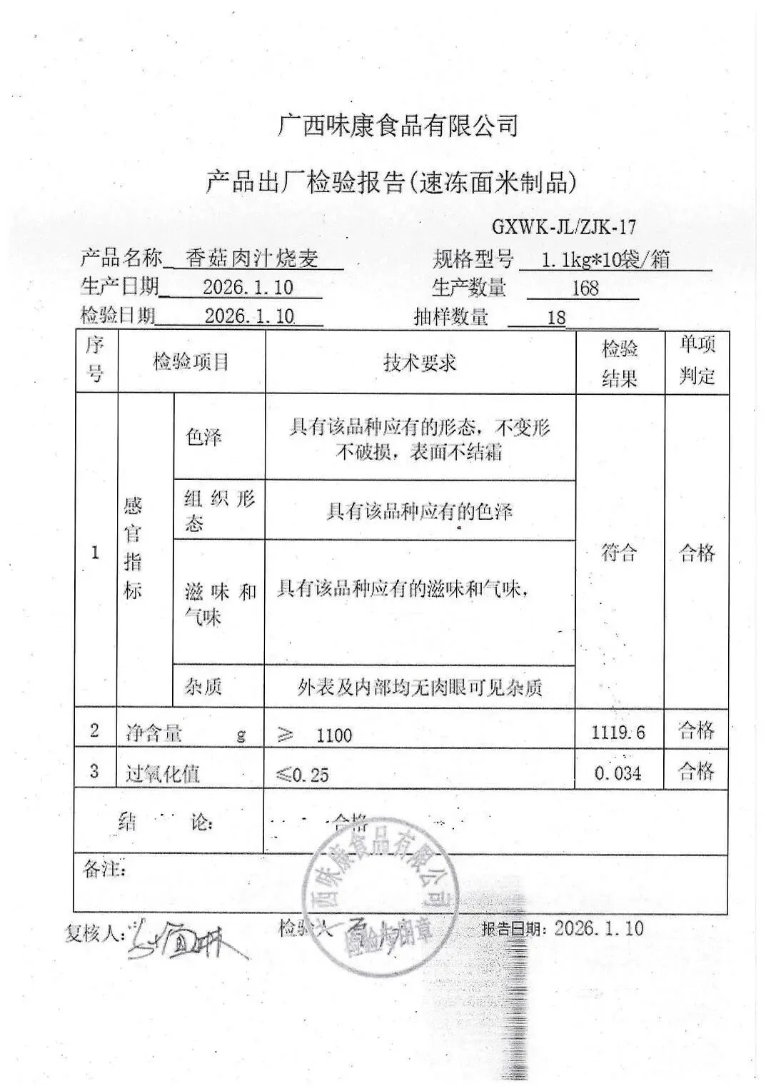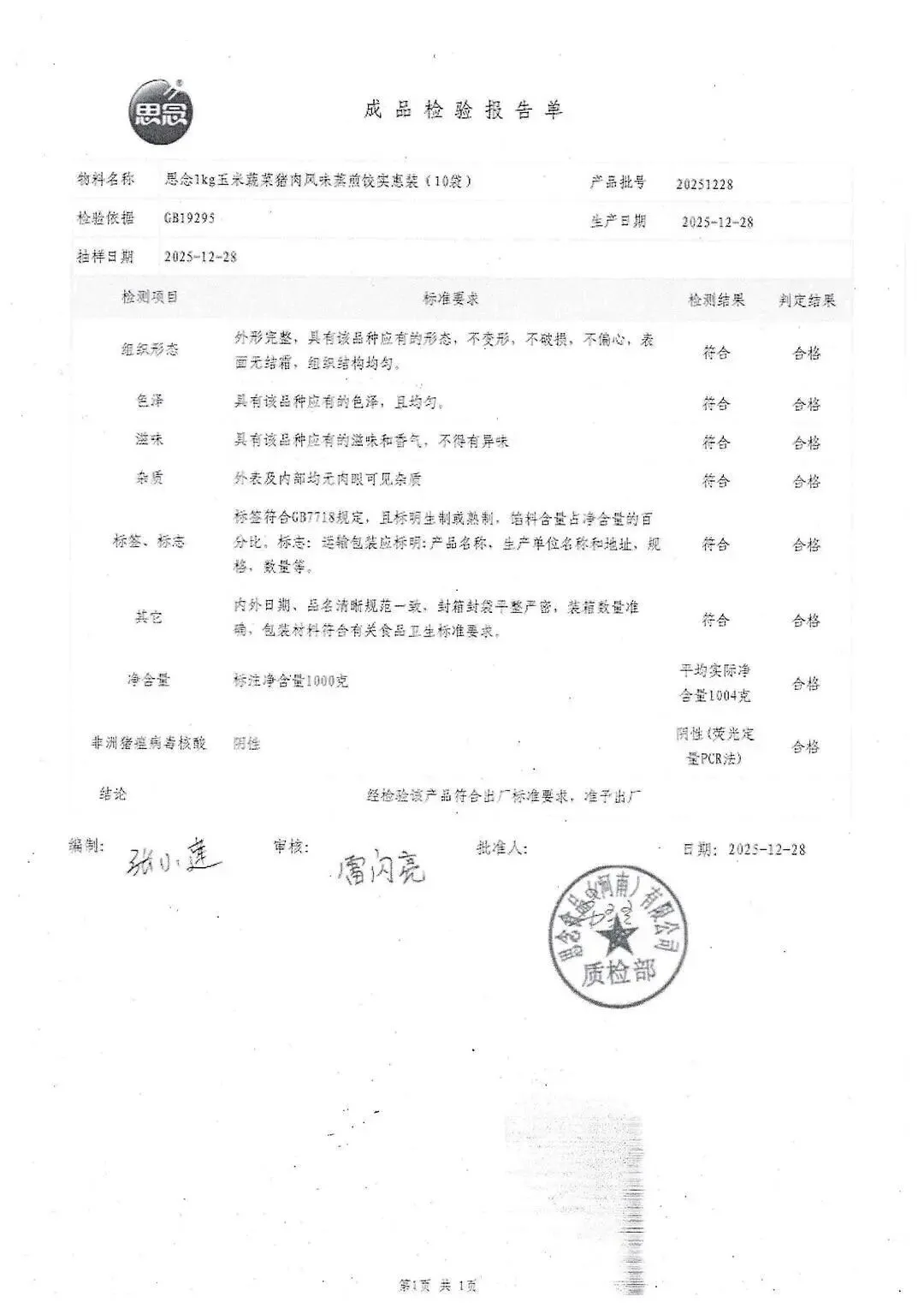 >金浦供应链&禾美农业-01月25日冻品、水饺、丸子、热狗、腊肠检测报告