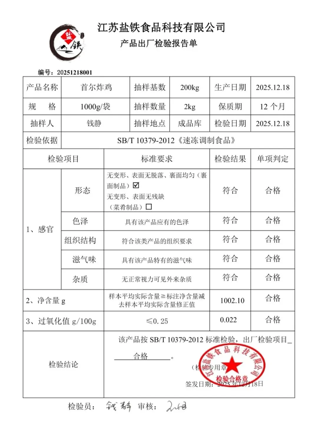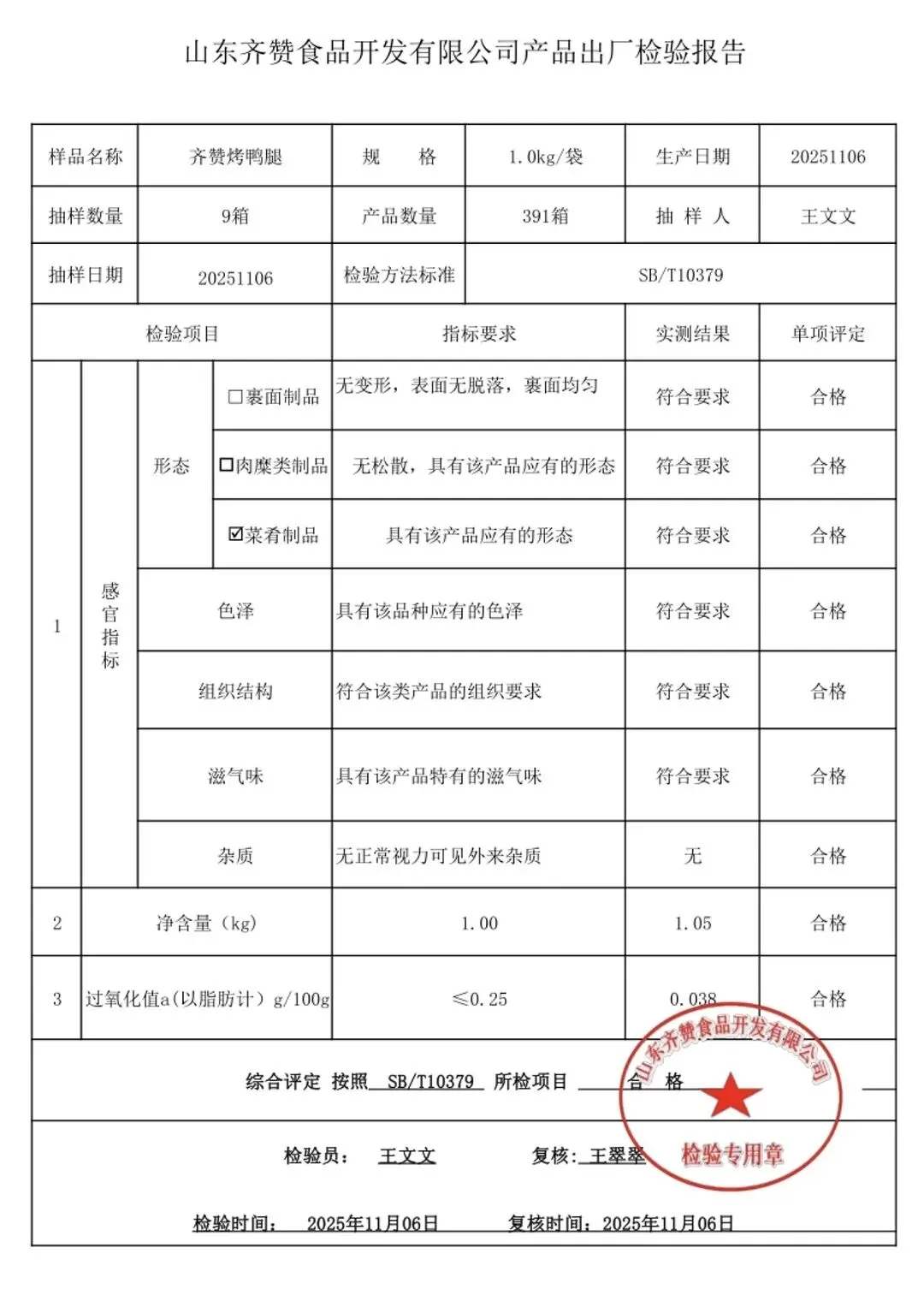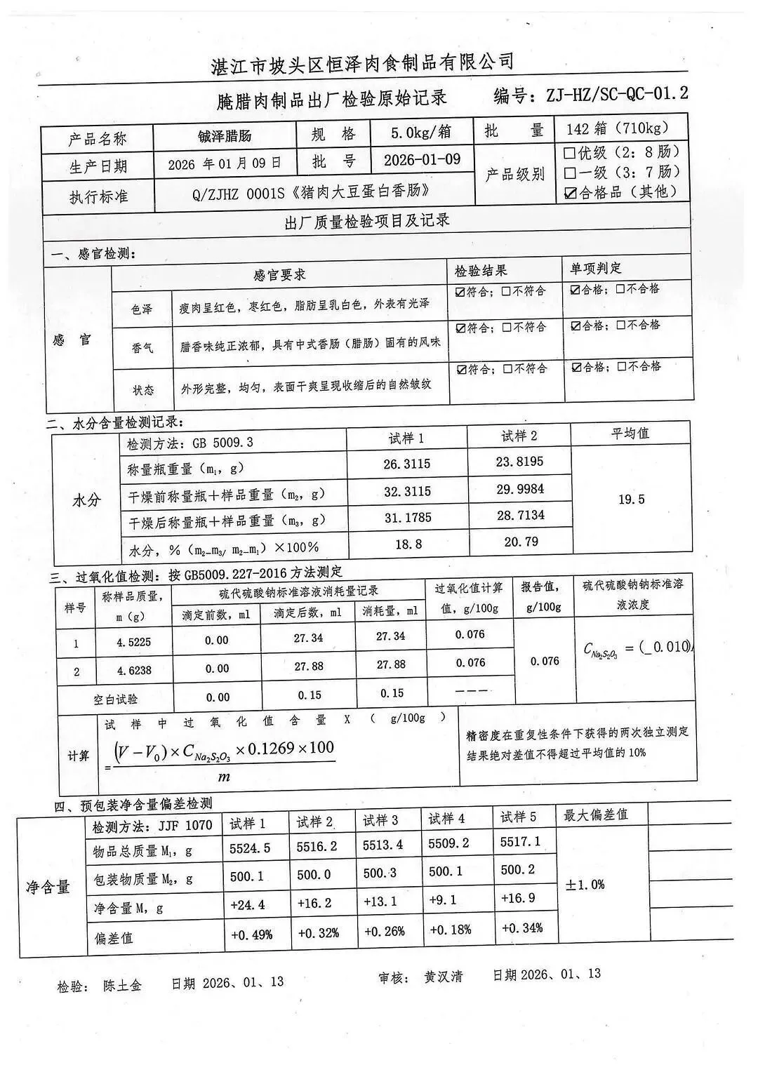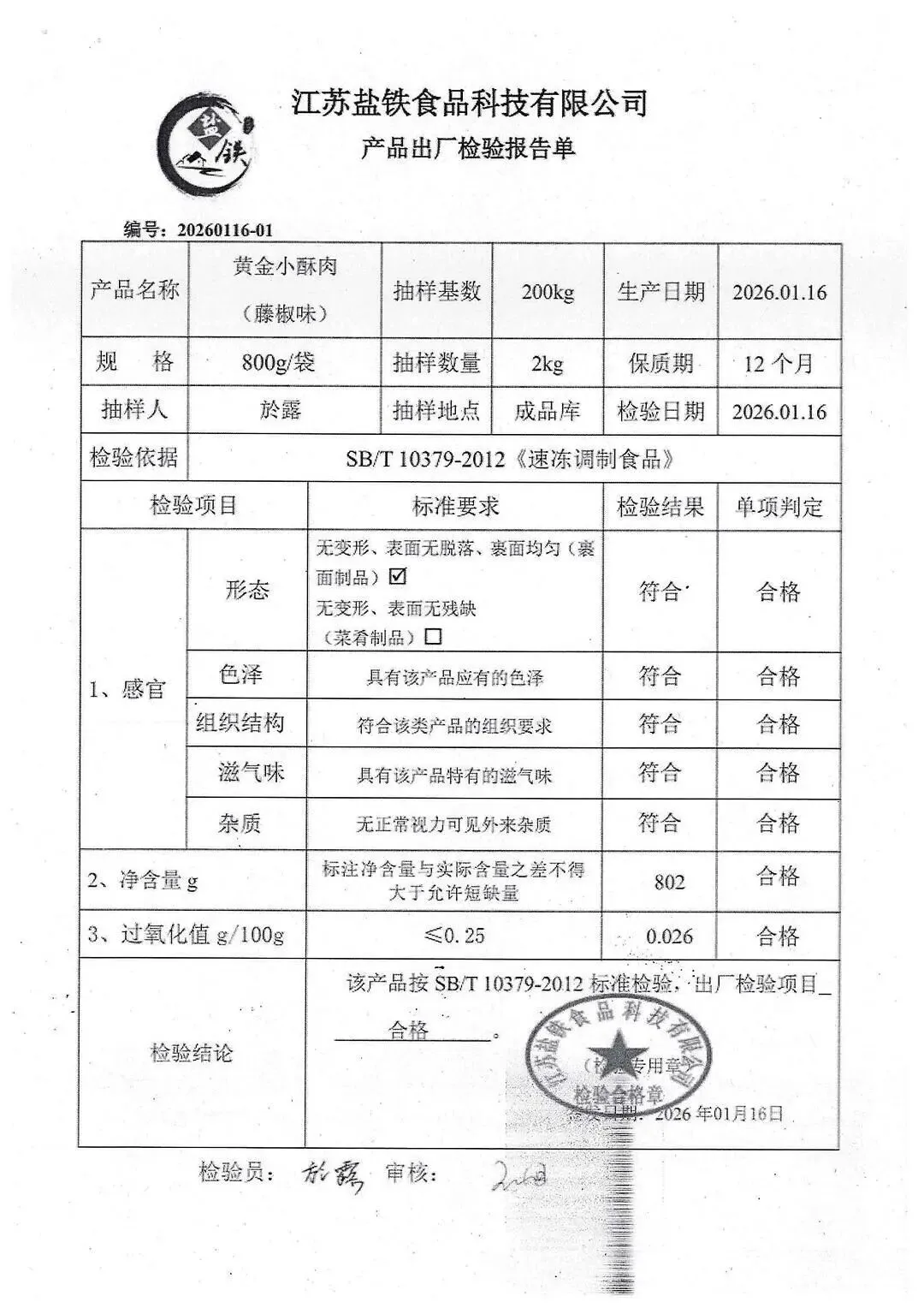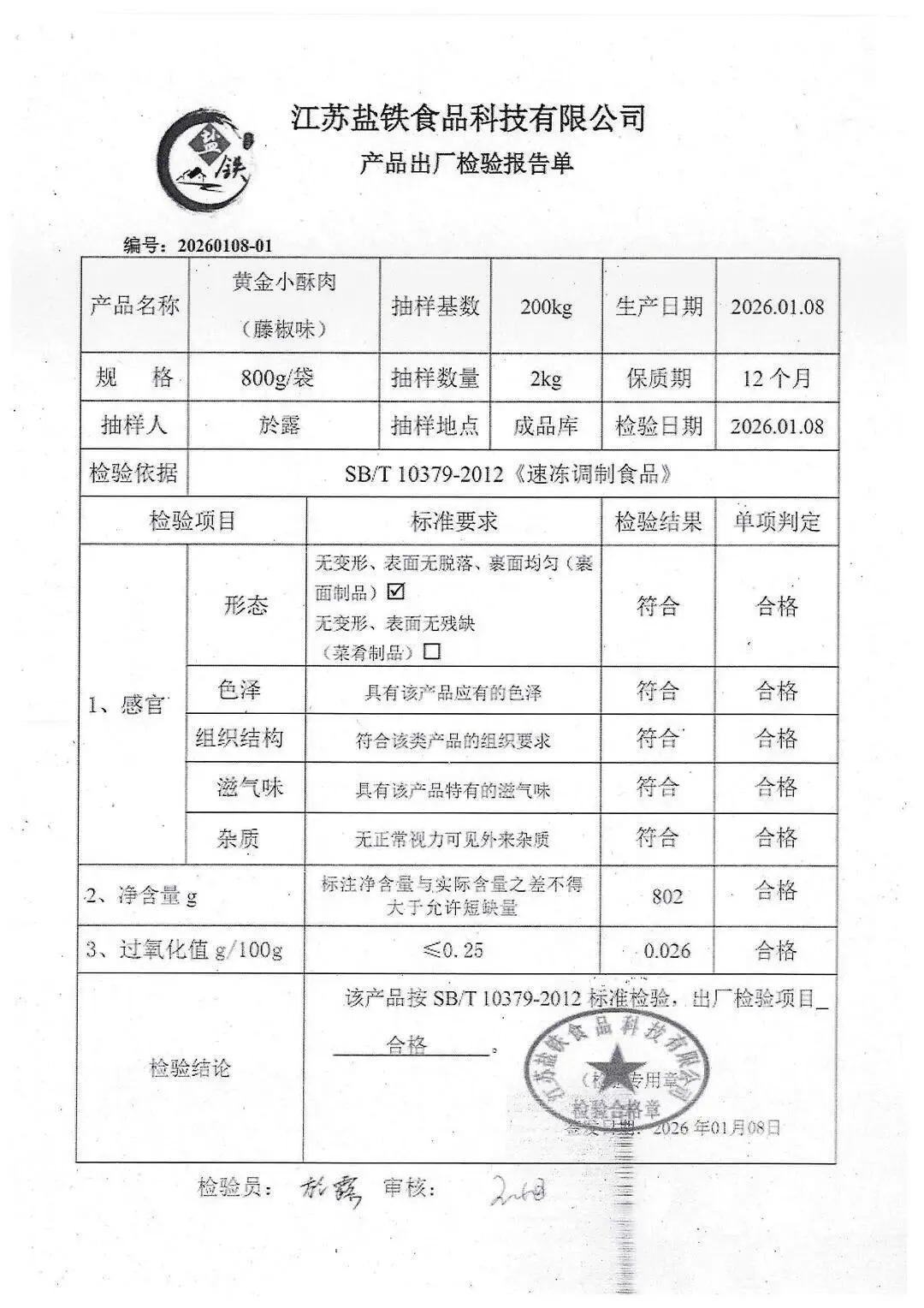 >金浦供应链&禾美农业-01月25日冻品、水饺、丸子、热狗、腊肠检测报告