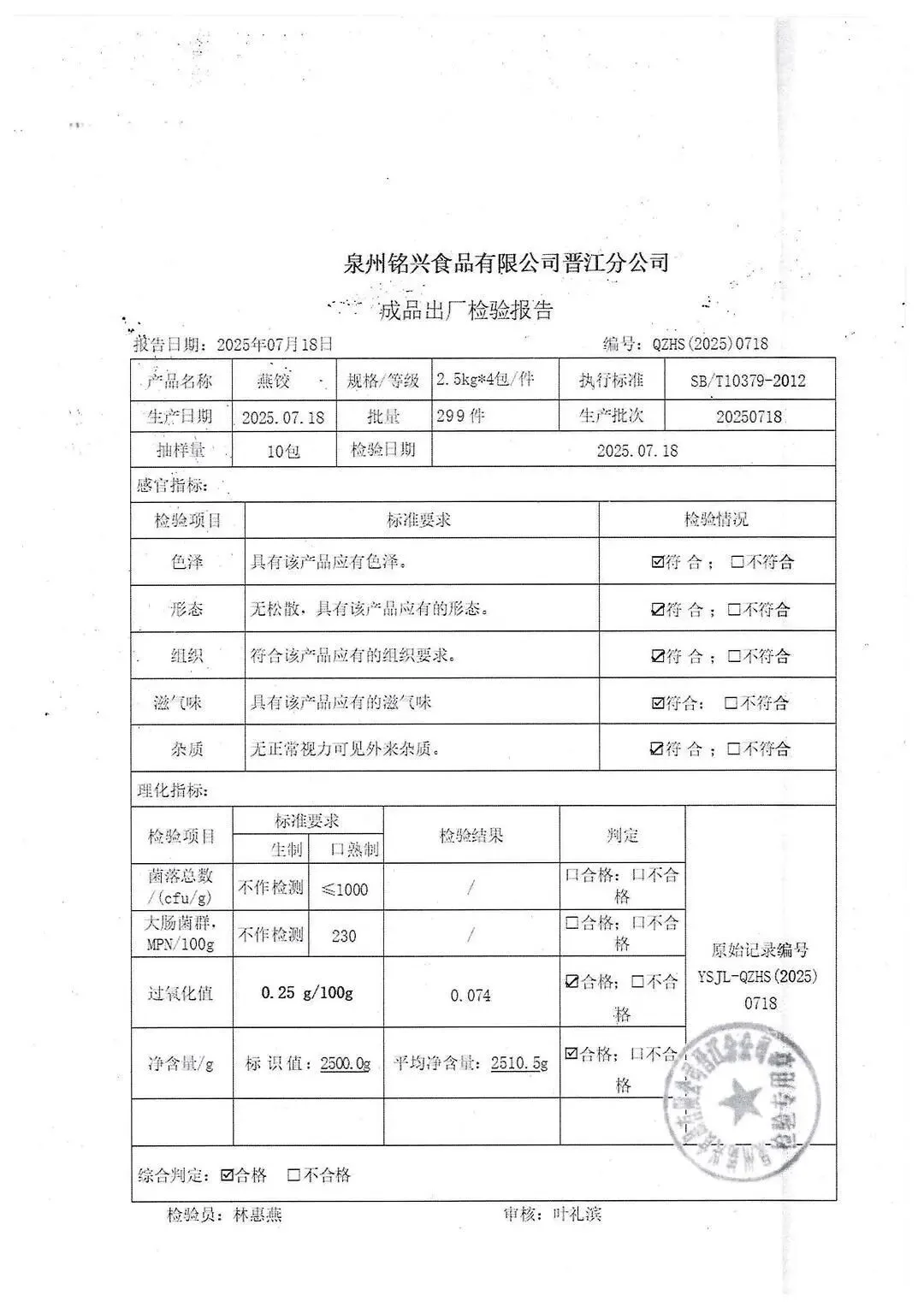 冻品、水饺、丸子、热狗、腊肠检测报告