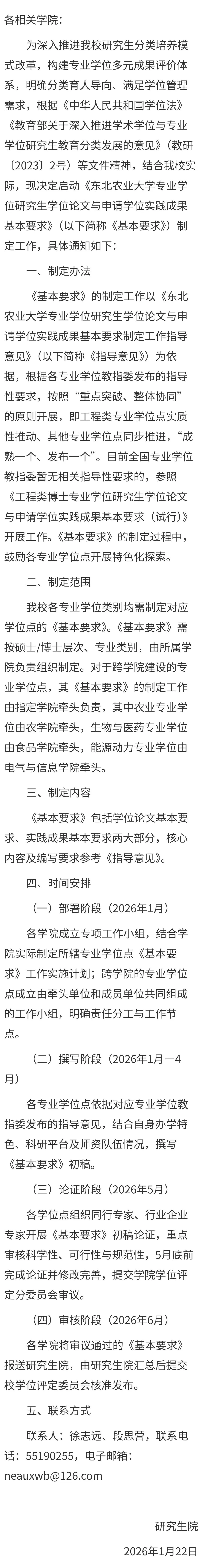 关于启动《东北农业大学专业学位研究生学位论文与申请学位实践成果基本要求》制定工作的通知