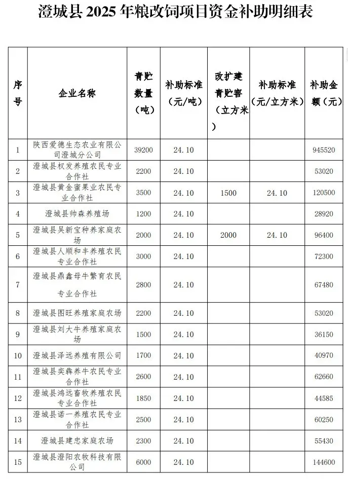 澄城县农业农村局关于公开2025年粮改饲项目实施情况的公示