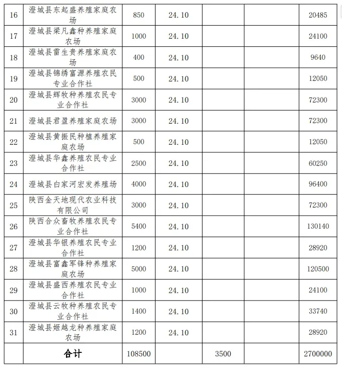 附件:澄城县2025年粮改饲项目资金补助明细表