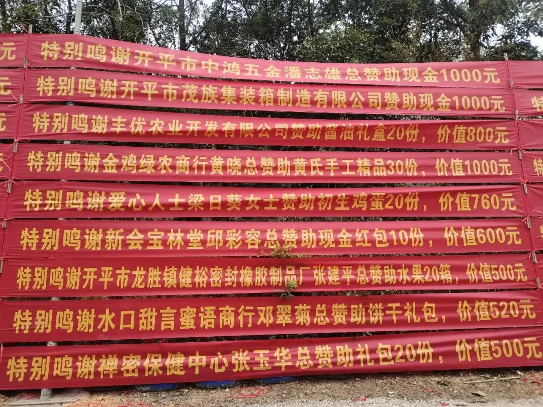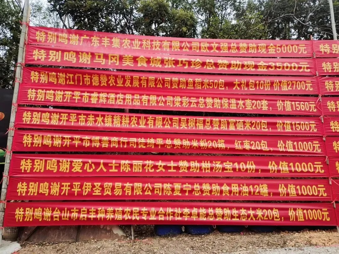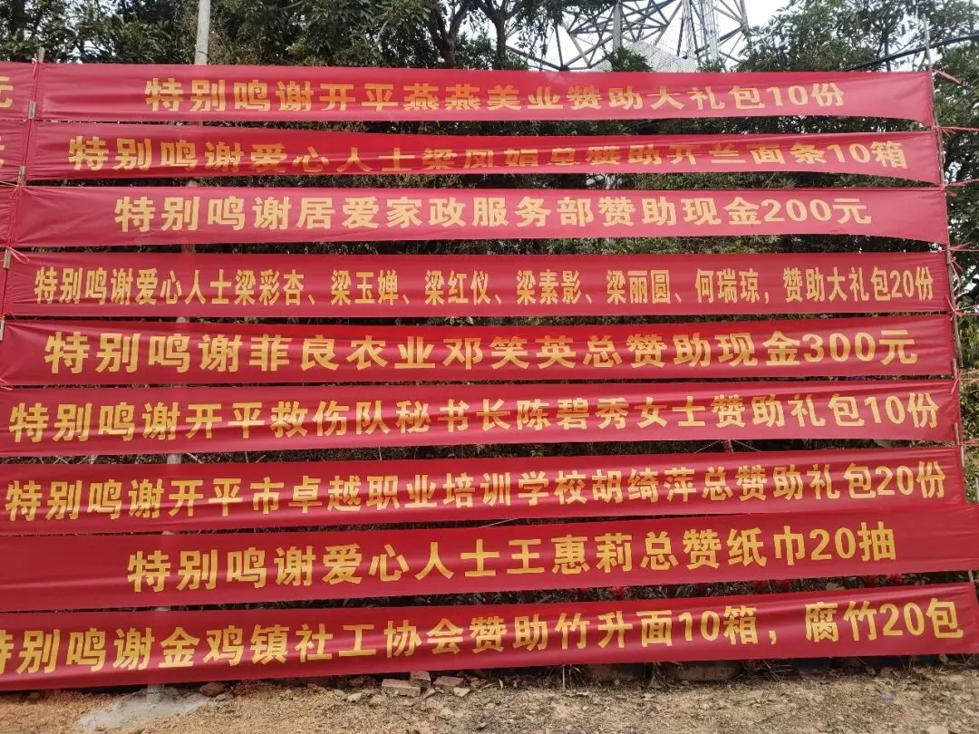 特别鸣谢开平市博善商行司徒绮平总赞助米粉20箱红枣20包,价值1000元