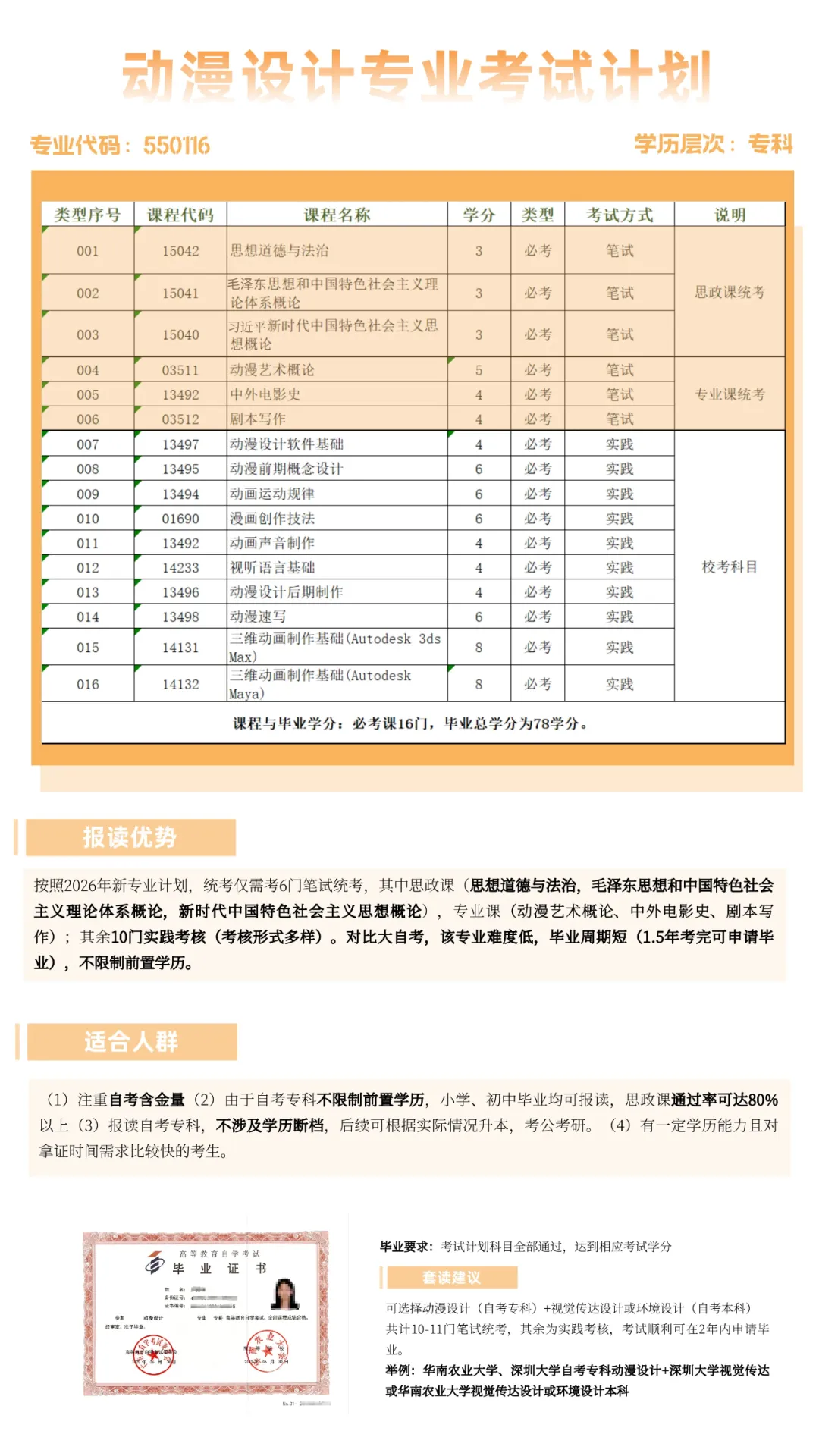 仅需6门统考,且无需考数学、英语,学习更轻松。