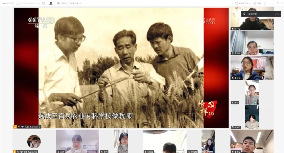 为深入学习贯彻习近平新时代中国特色社会主义思想及党的二十大和二十届历次全会精神,引导党员以先进典型为标杆,2026年1月20日晚8点,郑州大学农业与生物制造学院研究生第一党支部组织全体党员于线上集中观看《榜样10》专题节目。学院团委书记冯小杰、学生工作高级主管殷湘坤与支部全体党员共同参与,党员们潜心观看,线上互动热烈。