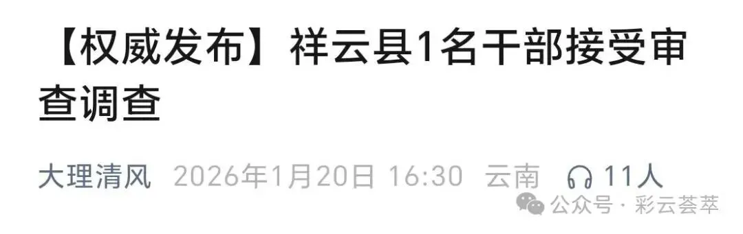 嘿,大家好啊!今天咱得好好唠唠,这事儿可真是让人心里五味杂陈。就在 2026 年 1 月 20 号,祥云县纪委监委放出消息,祥云县农业农村局的 “一把手” 谢卓晟,出事儿了!他涉嫌严重违纪违法,现在正被审查调查呢。这事儿一出来,可把周围的人都惊到了,毕竟他之前在大家眼里,那可是个挺有本事、挺受认可的人啊。