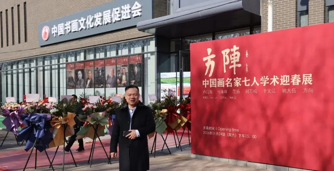 “方阵”之名,既是七位艺术家并肩而立的学术姿态,也是当代中国画传承创新的精神象征。卢禹舜的山水氤氲着宇宙哲思,马锋辉的花鸟饱含生命张力,范扬的笔墨恣肆纵横,刘万鸣的翎毛意趣盎然,于文江的人物温润传神,姚大伍的草木朴拙天真,方向的江南小品清雅绝尘。七位名家以不同的创作语言,共同勾勒出新时代中国画的多元面貌。