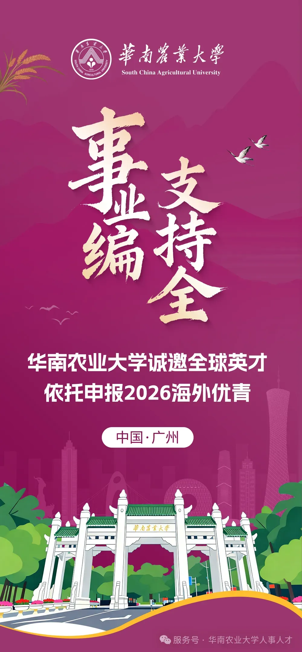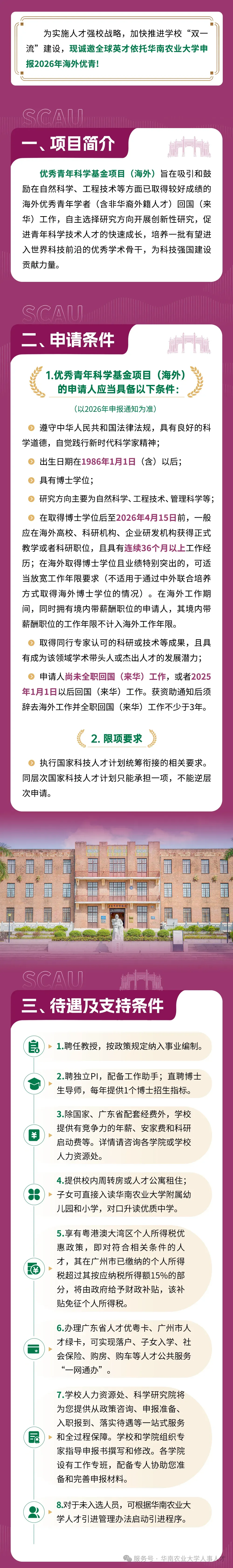 >事业编 支持全 | 华南农业大学2026年诚邀全球英才依托申报海外优青!