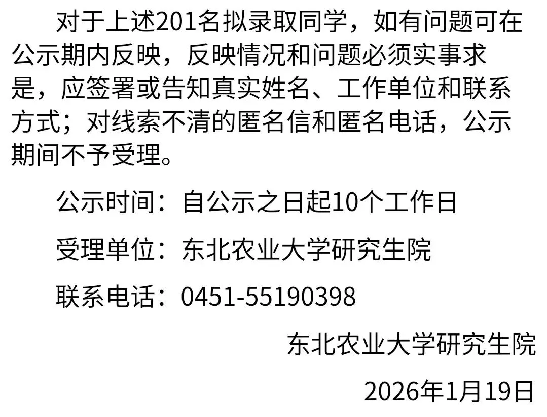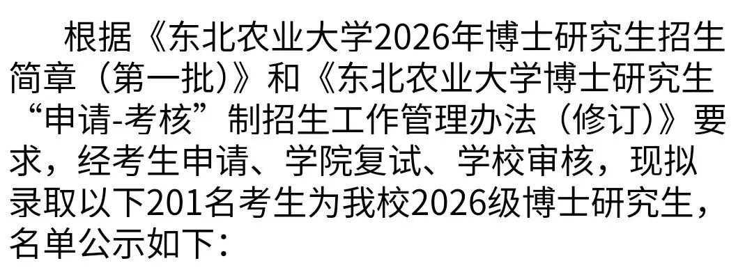 >东北农业大学2026年博士研究生录取名单公示(第一批)