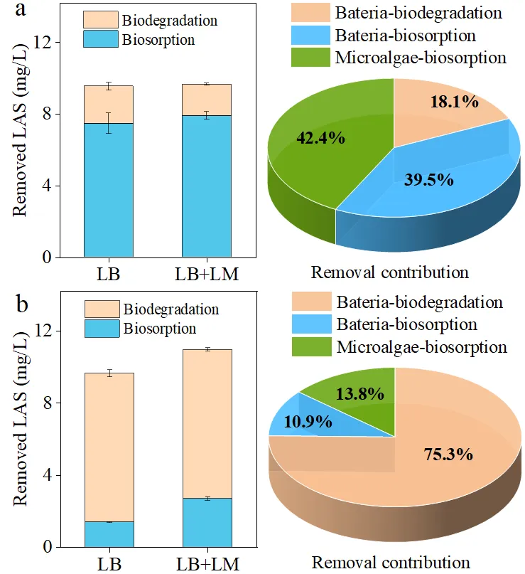 图2. 微藻和细菌在LAS去除中的分化与贡献。