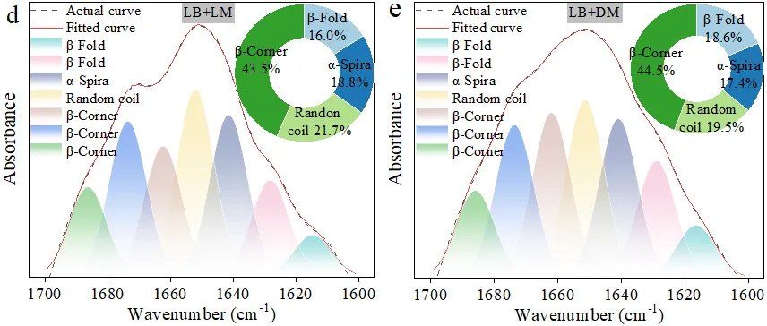 LAS吸附后失活细胞聚集很可能归因于分子间相互作用,其中微藻表现出特别明显的聚集现象。LAS暴露期间微藻与细菌之间官能团的响应顺序为CO–NH2> C–H > C–O。藻菌共生系统策略性分泌的CO–NH2,主要是作为EPS中蛋白质成分的生物合成部分,通过分子封存来减轻LAS的毒性。表面蛋白在LAS吸附前后保持稳定的二级结构,能够通过暴露基层轻松介导与LAS的静电相互作用。