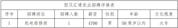 2. 经验要求:具备3年以上机电设备维修工作经验。