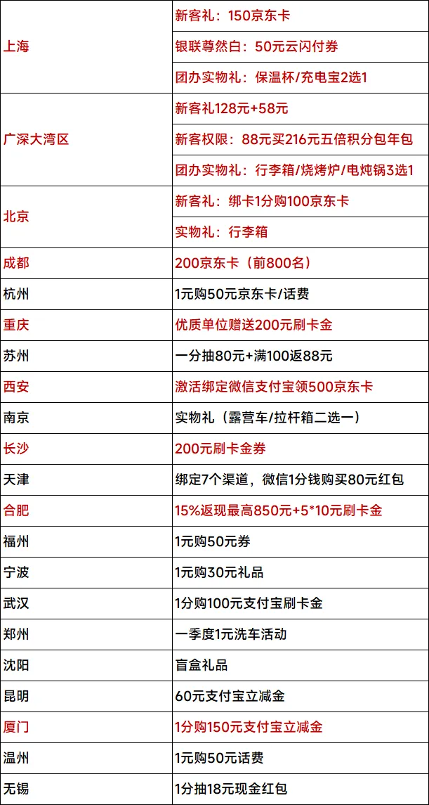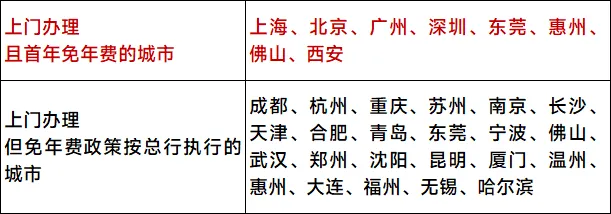 尤其是西安,上门办理+首年免年费+总行新客礼+分行500元京东卡,简直超神!