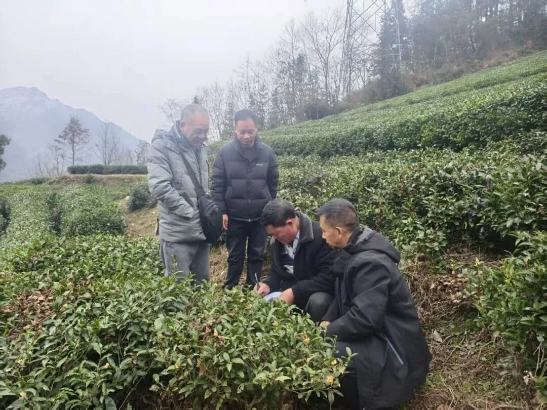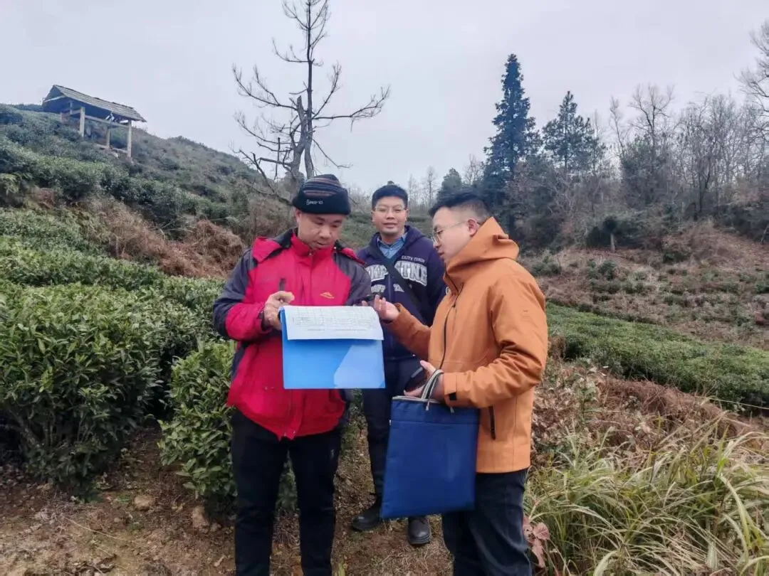 茶产业发展服务中心到小围寨街道茶农村、团山村核实茶园提质增效项目肥料发放面积。