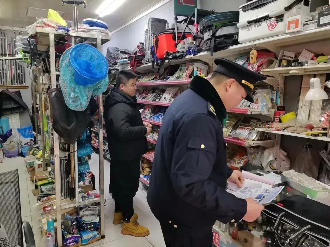 农业综合行政执法大队到小围寨街道、文峰街道、广惠街道开展农资市场检查、渔具店巡查并宣传法律法规。