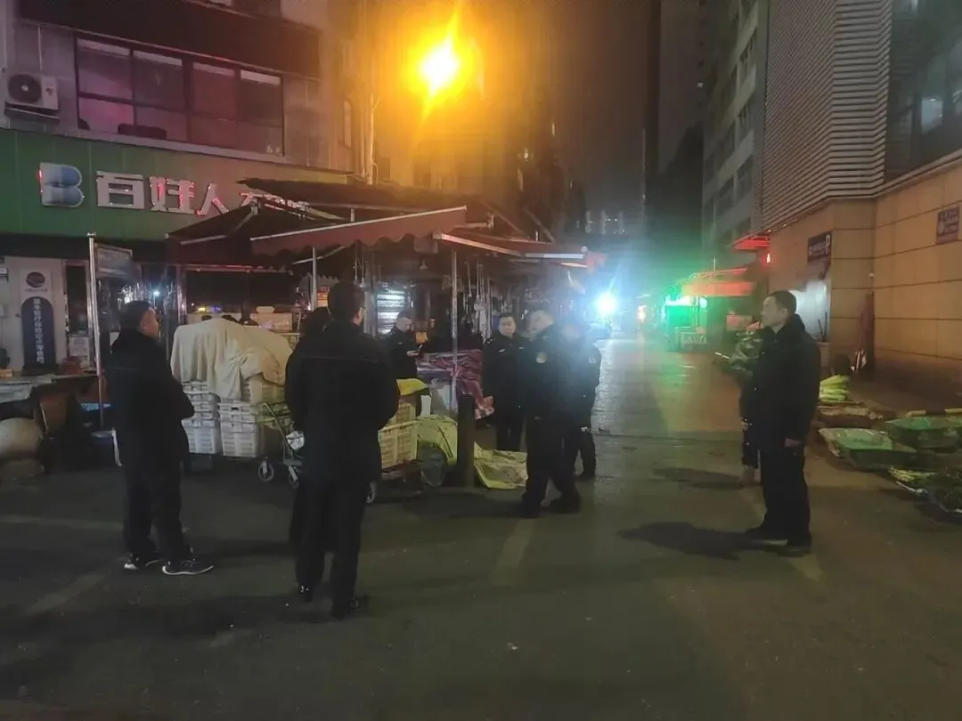 局党组成员、农业综合行政执法大队大队长刘剑带队开展裤裆街马路市场夜间集中整治工作。
